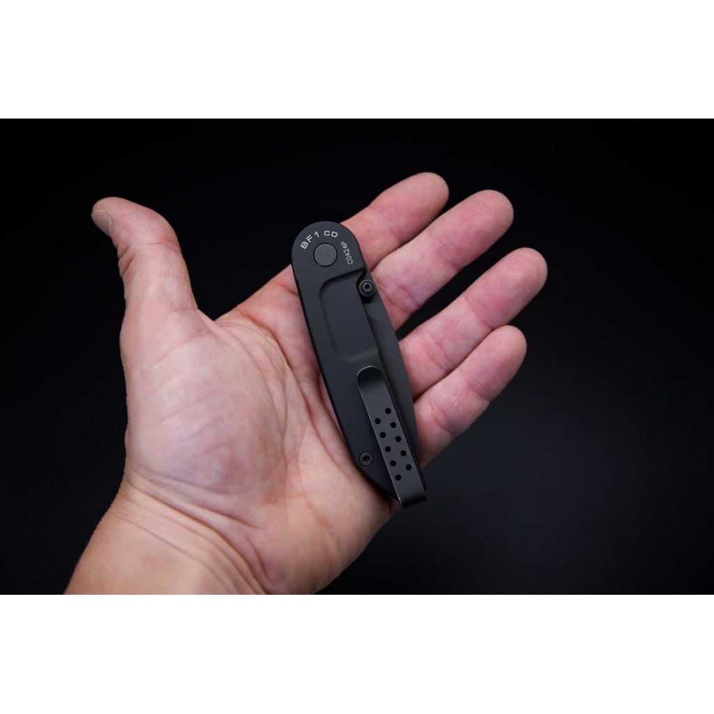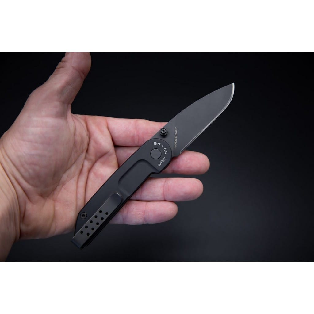 Extrema Ratio BF1 to kompaktowy i lekki folder EDC do codziennego użytku. Jego wytrzymała konstrukcja o taktycznym wyglądzie sprawdzi się w ręku profesjonalnego żołnierza oraz usatysfakcnonuje miłośnika militariów. Głownia o uniwersalnym profilu Drop Point została wykonana z austriackiej stali nierdzewnej Bohler N690 o twardości 58 HRC. Charakteryzuje się wysoką odpornością na korozję i długim trzymaniem ostrości. W celu zabezpieczenia jej przed zarysowaniami i negatywnym działaniem czynników zewnętrznych pokryto ją czarną i antyodblaskową powłoką MIL-C-13924. Obustronny kołek na klindze służy do sprawnego rozkładania noża jedną ręką. Blokada Liner Lock dba o bezpieczeństwo podczas pracy, chroniąc przed przypadkowym złożeniem się narzędzia, gdy jest w użyciu. Rękojeść z anodowanego na czarno aluminium, któremu model zawdzięcza niewielką wagę, posiada ergonomiczne wyprofilowanie na palec poprawiające przyczepność do dłoni. Całość uzupełnia dwupozycyjny klips mocujący do głębokiego i dyskretnego przenoszenia foldera w kieszeni spodni lub przy wyposażeniu. Extrema Ratio to włoska manufaktura z siedzibą w Prato, w regionie Toskanii. Firma od 1997 roku mistrzowsko projektuje niesamowicie mocne noże taktycznie i myśliwskie, które nie mają sobie równych w przemyśle militarnym. Produkcja opiera się jedynie na wysokiej jakości materiałach i najnowocześniejszych technologiach. Co w połączeniu z tradycyjnym rzemiosłem i ręcznym wykończeniem każdego egzemplarza tworzy produkt spełniający najostrzejsze normy wojskowe.