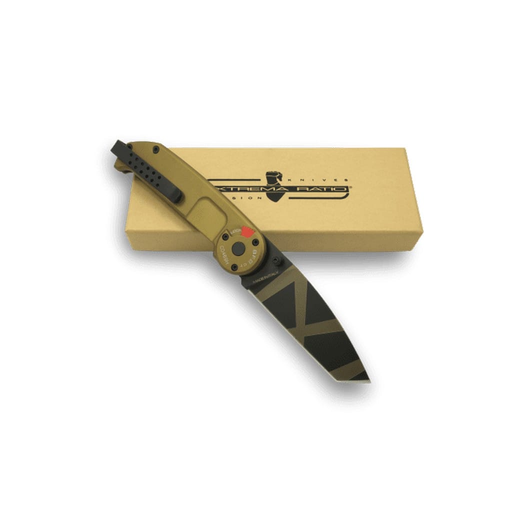 Extrema Ratio BF2 to pełnowymiarowy folder EDC do codziennego użytku. Jego wytrzymała konstrukcja o taktycznym wyglądzie sprawdzi się w ręku żołnierza lub policjanta oraz usatysfakcnonuje miłośnika militariów. Głownia o profilu Tanto, świetnie nadająca się również do pchnięć, została wykonana z austriackiej stali nierdzewnej Bohler N690 o twardości 58 HRC. Charakteryzuje się wysoką odpornością na korozję i długim trzymaniem ostrości. W celu zabezpieczenia jej przed zarysowaniami i negatywnym działaniem czynników zewnętrznych pokryto ją czarną, matową powłoką z grawerowanym laserowo pustynnym kamuflażem Desert Warfare. Obustronny kołek na klindze służy do sprawnego rozkładania noża jedną ręką. Mechanizm Liner Lock, dodatkowo wspierany ręczną blokadą, dba o bezpieczeństwo podczas pracy, chroniąc przed przypadkowym złożeniem się narzędzia, gdy jest w użyciu. Rękojeść z anodowanego na brązowo aluminium, któremu model zawdzięcza niedużą wagę, posiada ergonomiczne wyprofilowanie na palec poprawiające przyczepność do dłoni. Całość uzupełnia dwupozycyjny klips mocujący do głębokiego i dyskretnego przenoszenia foldera w kieszeni spodni lub przy wyposażeniu. Extrema Ratio to włoska manufaktura z siedzibą w Prato, w regionie Toskanii. Firma od 1997 roku mistrzowsko projektuje niesamowicie mocne noże taktycznie i myśliwskie, które nie mają sobie równych w przemyśle militarnym. Produkcja opiera się jedynie na wysokiej jakości materiałach i najnowocześniejszych technologiach. Co w połączeniu z tradycyjnym rzemiosłem i ręcznym wykończeniem każdego egzemplarza tworzy produkt spełniający najostrzejsze normy wojskowe.