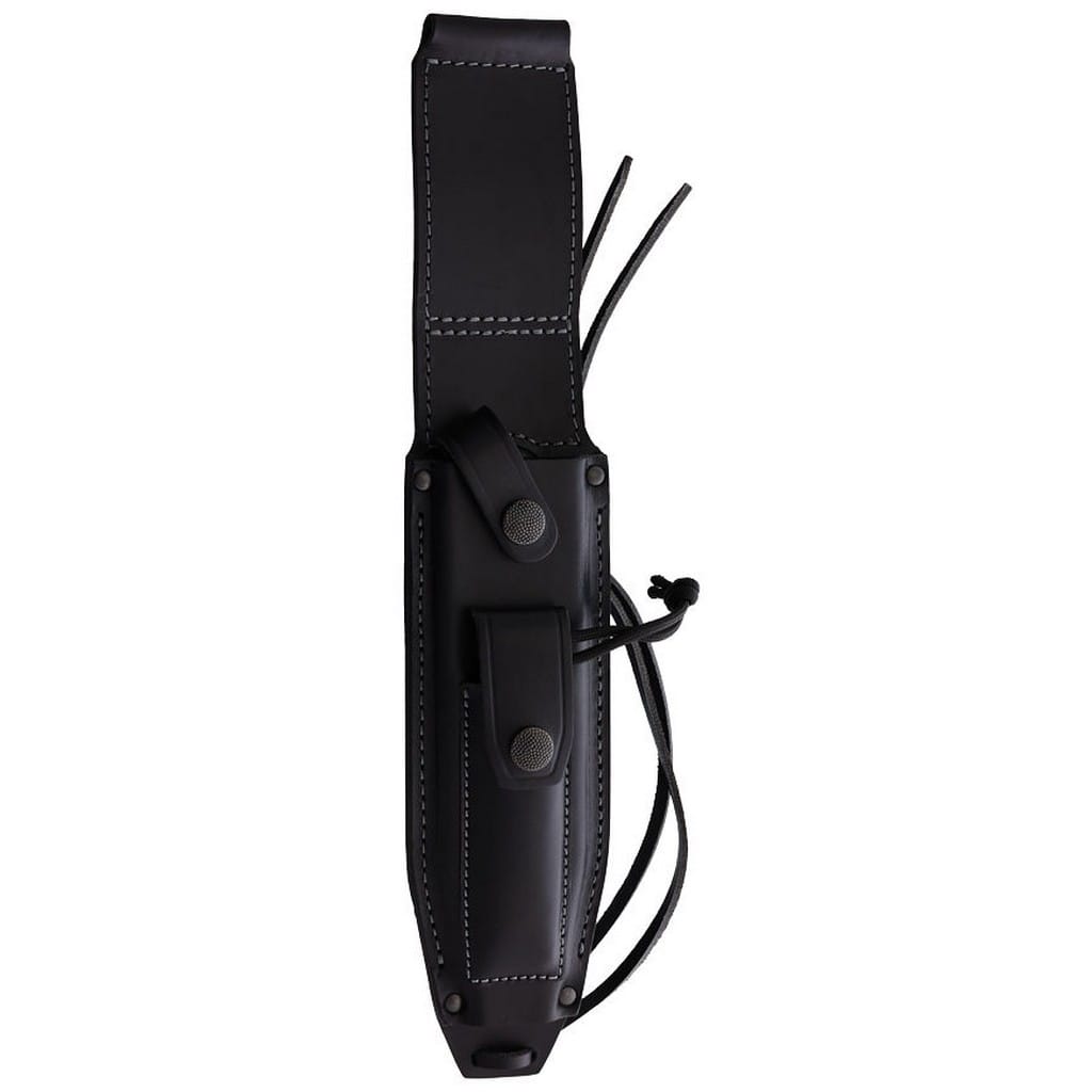 Dobermann IV firmy Extrema Ratio to wszechstronny nóż o szerokim spektrum zastosowań. Idealnie sprawdzi się do prac na świeżym powietrzu jako narzędzie survivalowe, a także na polowaniu. Model posiada solidną i niezawodną konstrukcją full tang, która sprosta niejednemu ciężkiemu wyzwaniu. Głownia o uniwersalnym profilu Drop Point, gruba na ponad sześć milimetrów, została wykonana z austriackiej stali nierdzewnej Bohler N690 o twardości 58 HRC. Charakteryzuje się wysoką odpornością na korozję i długim trzymaniem ostrości. Wykończenie jej metodą Satin pozostawia drobne ryski lekko matujące powierzchnię, co daje efekt niedokładnego wypolerowania. Bezpieczeństwo użytkowania gwarantuje nietypowy jelec chroniący palce przed ich przypadkowym zsunięciem się na krawędź tnącą. Rękojeść z termoplastycznego elastomeru o nazwie Forprene zapewnia komfort, a także doskonałą ergonomię chwytu świetnie dopasowując się do dłoni użytkownika, nawet gdy jest ona w rękawicy. Cechuje się niewrażliwością na chemikalia oraz ekstremalne temperatury, co pozwala jej przechodzić rygorystyczne testy NATO. Na zakończeniu w stalowej głowicy, w awaryjnej sytuacji służącej jako zbijak do szyb, umieszczono otwór na linkę, umożliwiający przełożenie paracordu i stworzenie oplotu na nadgarstek. W zestawie znajduje się piękna pochwa ze skóry wyposażona w kieszonkę, do której włożono diamentowy kamień ostrzący. Pokrowiec daje możliwość wygodnego transportowania narzędzia na pasku spodni, blisko ciała. Extrema Ratio to włoska manufaktura z siedzibą w Prato, w regionie Toskanii. Firma od 1997 roku mistrzowsko projektuje niesamowicie mocne noże taktycznie i myśliwskie, które nie mają sobie równych w przemyśle militarnym. Produkcja opiera się jedynie na wysokiej jakości materiałach i najnowocześniejszych technologiach. Co w połączeniu z tradycyjnym rzemiosłem i ręcznym wykończeniem każdego egzemplarza tworzy produkt spełniający najostrzejsze normy wojskowe.