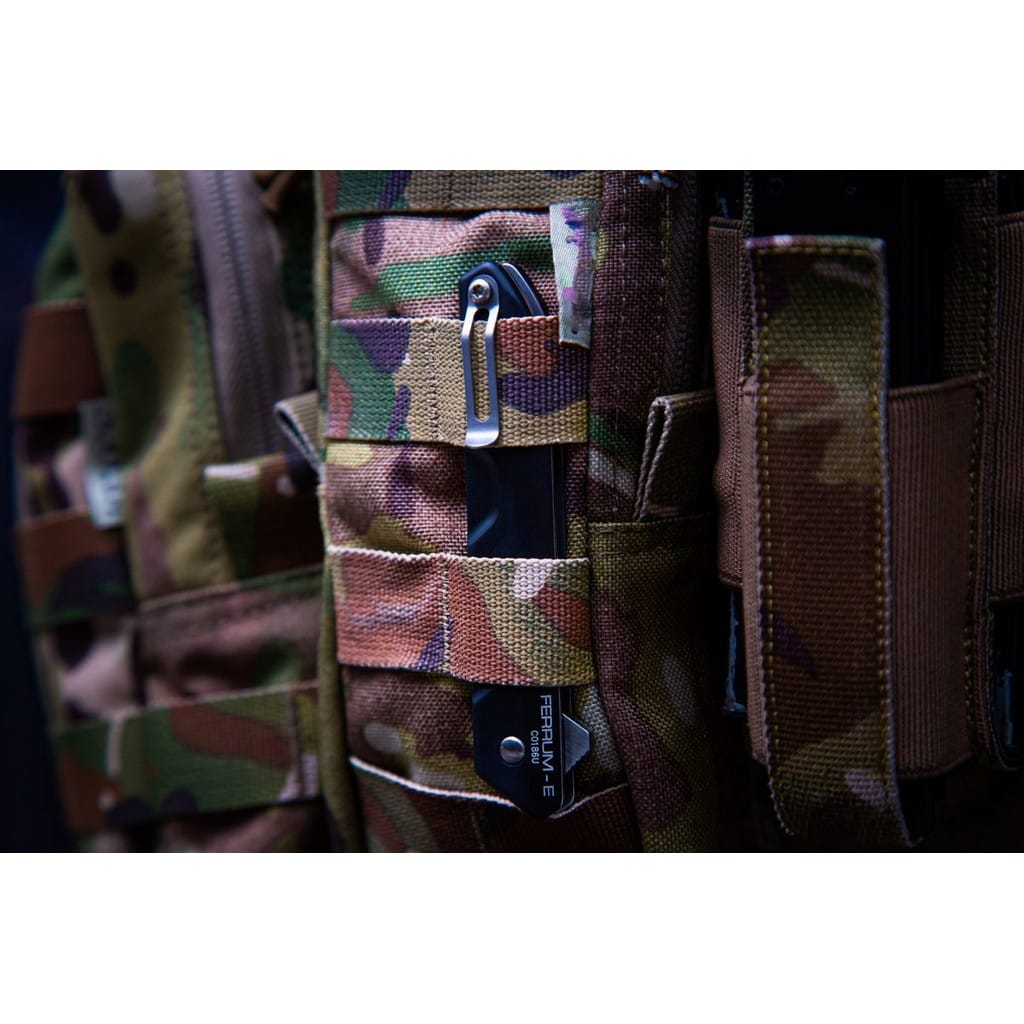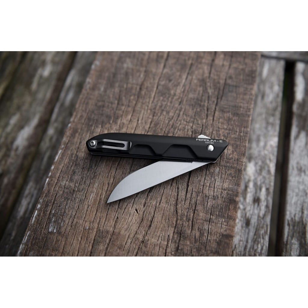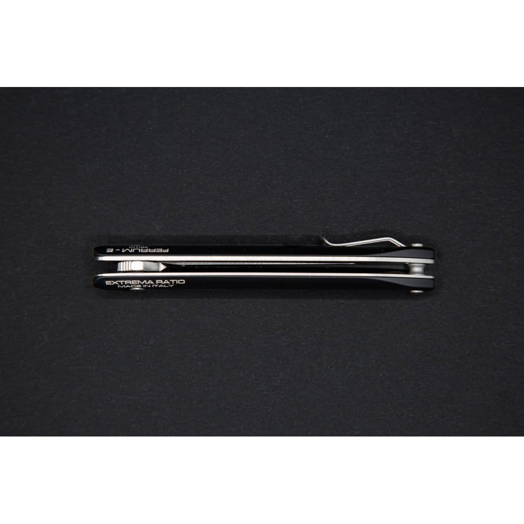 Ferrum E firmy Extrema Ratio to klasyczny folder EDC o wysokiej funkcjonalności w codziennym użytkowaniu. Gwarantuje niezawodność i wydajność na najwyższym poziomie, dlatego spełni oczekiwania najbardziej wymagających kolekcjonerów. Głownia o uniwersalnym profilu Drop Point została wykonana z austriackiej stali nierdzewnej Bohler N690 o twardości 58 HRC. Charakteryzuje się wysoką odpornością na korozję i długim trzymaniem ostrości. Wykończenie jej metodą Satin pozostawia drobne ryski lekko matujące powierzchnię, co daje efekt niedokładnego wypolerowania. Klingę osadzono na systemie łożysk kulkowych, która przy wykorzystaniu flippera, pełniącego jednocześnie funkcję jelca, wysuwa się płynnie i gładko. Blokada Liner Lock dba o bezpieczeństwo podczas pracy, gdy narzędzie jest w użyciu. Rękojeść z anodowanego na czarno aluminium posiada wyprofilowania pod palce, dzięki czemu możemy pewnie i mocno zacisnąć dłoń oraz cieszyć się komfortowym chwytem. Konstrukcję uzupełnia dwupozycyjny klips mocujący do głębokiego i dyskretnego przenoszenia foldera w kieszeni spodni lub przy wyposażeniu. Extrema Ratio to włoska manufaktura z siedzibą w Prato, w regionie Toskanii. Firma od 1997 roku mistrzowsko projektuje niesamowicie mocne noże taktycznie i myśliwskie, które nie mają sobie równych w przemyśle militarnym. Produkcja opiera się jedynie na wysokiej jakości materiałach i najnowocześniejszych technologiach. Co w połączeniu z tradycyjnym rzemiosłem i ręcznym wykończeniem każdego egzemplarza tworzy produkt spełniający najostrzejsze normy wojskowe.