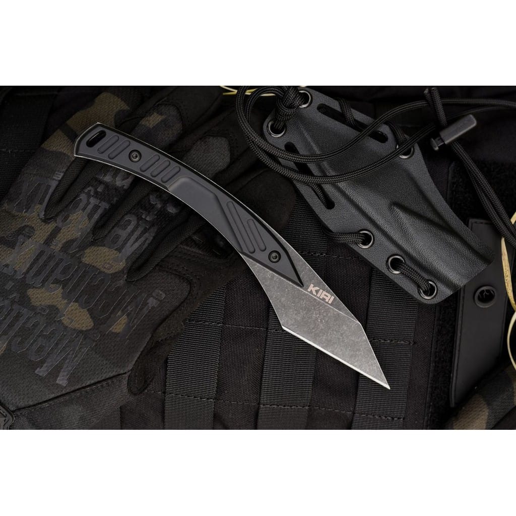 Kiridashi to rodzaj wielofunkcyjnego japońskiego noża odznaczającego się naostrzoną krawędzią tnącą tylko po jednej stronie klingi. Firma Extrema Ratio na nowo zinterpretowała ten tradycyjny model zachowując jego styl oraz nadając mu bardziej taktyczny wygląd. Kiri cechuje się niesamowicie ostrą końcówką zapewniającą wysoką skuteczność penetracji. Gwarantuje niezawodność i wydajność na najwyższym poziomie, dlatego doskonale sprawdzi się w codziennym użytkowaniu. Głownia została wykonana z austriackiej stali nierdzewnej Bohler N690 o twardości 58 HRC. Charakteryzuje się wysoką odpornością na korozję i długim trzymaniem ostrości. Wykończenie jej metodą Dark Stone pozostawia nieregularną powłokę dobrze maskującą rysy i zadrapania powstające podczas eksploatacji. Do stalowej konstrukcji full tang przymocowano śrubami aluminiowe okładziny. Rękojeść posiada wyprofilowanie pod palce, a także nacięcia poprawiające przyczepność do dłoni. Na zakończeniu umieszczono otwór umożliwiający przełożenie breloka ozdobnego lub linki, które ułatwią chwytanie noża. W zestawie znajduje się pochwa z kydexu wyposażona w paracord z ogranicznikiem, dzięki któremu możemy wygodnie przenosić narzędzie na szyi. Dodatkowo liczne otwory na jej krawędzi pozwalają na troczenie noża do wyposażenia. Extrema Ratio to włoska manufaktura z siedzibą w Prato, w regionie Toskanii. Firma od 1997 roku mistrzowsko projektuje niesamowicie mocne narzędzia taktycznie i myśliwskie, niemające sobie równych w przemyśle militarnym. Produkcja opiera się jedynie na wysokiej jakości materiałach i najnowocześniejszych technologiach. Co w połączeniu z tradycyjnym rzemiosłem i ręcznym wykończeniem każdego egzemplarza tworzy produkt spełniający najostrzejsze normy wojskowe.