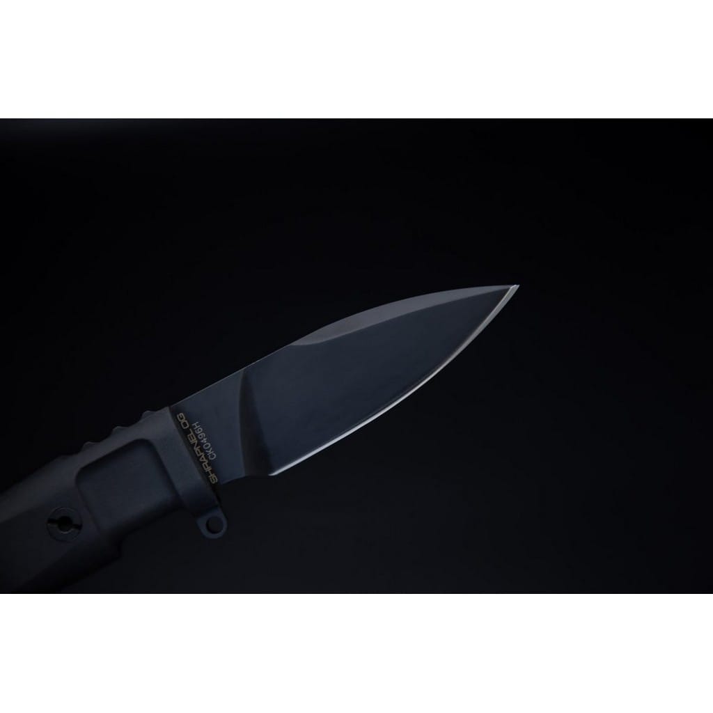 Shrapnel OG firmy Extrema Ratio to kompaktowy nóż taktyczny o solidnej konstrukcji full tang. Odznacza się ponadprzeciętną wytrzymałością gwarantując wydajność na najwyższym poziomie. Jest to idealny wybór dla osób poszukujących niezawodnego narzędzia, które sprawdzi się w każdym środowisku. Głownia o kształcie liścia, gruba na ponad sześć milimetrów, została wykonana z austriackiej stali nierdzewnej Bohler N690 o twardości 58 HRC. Charakteryzuje się wysoką odpornością na korozję i długim trzymaniem ostrości. W celu zabezpieczenia jej przed zarysowaniami i negatywnym działaniem czynników zewnętrznych pokryto ją czarną i antyodblaskową powłoką MIL-C-13924. Bezpieczeństwo użytkowania gwarantuje duży jelec chroniący palce przed ich przypadkowym zsunięciem się na krawędź tnącą. Dodatkowo karbowany grzbiet ostrza stanowi stabilne podparcie dla kciuka, co jest niezwykle pomocne przy precyzyjnych zadaniach. Rękojeść z termoplastycznego elastomeru o nazwie Forprene zapewnia komfort, a także doskonałą ergonomię chwytu świetnie dopasowując się do dłoni użytkownika, nawet gdy jest ona w rękawicy. Cechuje się niewrażliwością na chemikalia oraz ekstremalne temperatury, co pozwala jej przechodzić rygorystyczne testy NATO. Na zakończeniu w stalowej głowicy, w awaryjnej sytuacji służącej jako zbijak do szyb, umieszczono otwór na linkę, umożliwiający przełożenie paracordu i stworzenie oplotu na nadgarstek. W zestawie znajduje się pochwa z formowanego wtryskowo, niepodatnego na wstrząsy nylonu. Wyposażono ją w mocowanie typu Tek-Lok, za pomocą którego możemy wygodnie przenosić narzędzie na pasku w pozycji pionowej, poziomej lub pod kątem 45°. Extrema Ratio to włoska manufaktura z siedzibą w Prato, w regionie Toskanii. Firma od 1997 roku mistrzowsko projektuje niesamowicie mocne noże taktycznie i myśliwskie, które nie mają sobie równych w przemyśle militarnym. Produkcja opiera się jedynie na wysokiej jakości materiałach i najnowocześniejszych technologiach. Co w połączeniu z tradycyjnym rzemiosłem i ręcznym wykończeniem każdego egzemplarza tworzy produkt spełniający najostrzejsze normy wojskowe.