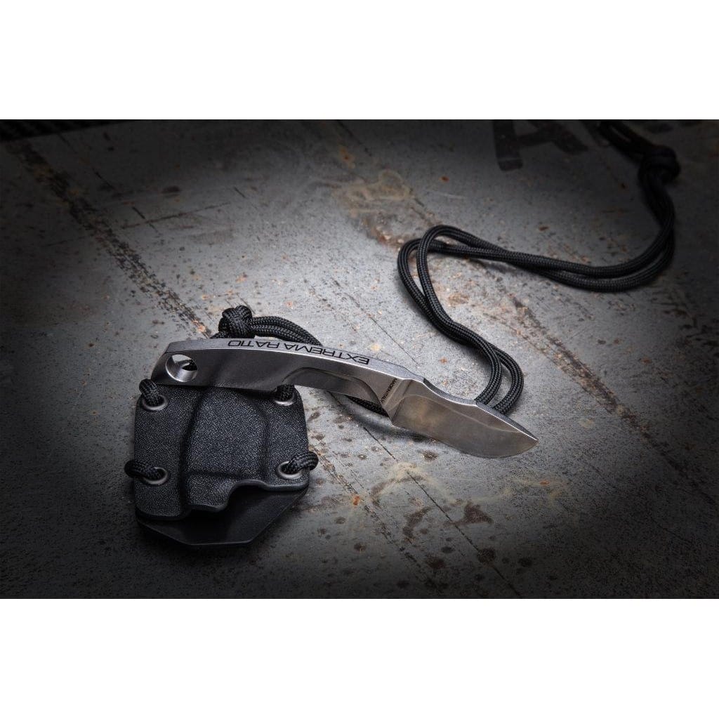 N.K.1 to niewielki i lekki nożyk stworzony przez firmę Extrema Ratio z myślą o codziennym użytkowaniu, do noszenia na szyi. Model posiada konstrukcję full tang, czyli wykonaną z jednego kawałka austriackiej stali nierdzewnej Bohler N690 o twardości 58 HRC. Charakteryzuje się ona wysoką odpornością na korozję i długim trzymaniem ostrości. Wykończenie jej metodą Stonewash pozostawia nieregularną powłokę dobrze maskującą rysy i zadrapania powstające podczas eksploatacji. Głownia o uniwersalnym profilu Drop Point doskonale sprawdzi się do drobnych prac w domu i w terenie. Zagłębienie na grzbiecie klingi stanowi stabilne podparcie dla kciuka, co jest niezwykle pomocne przy precyzyjnych zadaniach. Rękojeść posiada wyprofilowanie pod palec, co zwiększa kontrolę nad nożem i gwarantuje pewny chwyt. Na zakończeniu umieszczono otwór umożliwiający przełożenie breloka ozdobnego lub paracordu. W zestawie znajduje się pochwa z kydexu wyposażona w paracord z ogranicznikiem, dzięki któremu możemy wygodnie zawiesić całość na karku. Extrema Ratio to włoska manufaktura z siedzibą w Prato, w regionie Toskanii. Firma od 1997 roku mistrzowsko projektuje niesamowicie mocne noże taktycznie i myśliwskie, niemające sobie równych w przemyśle militarnym. Produkcja opiera się jedynie na wysokiej jakości materiałach i najnowocześniejszych technologiach. Co w uzupełnieniu z tradycyjnym rzemiosłem i ręcznym wykończeniem każdego egzemplarza tworzy produkt spełniający najostrzejsze normy wojskowe.
