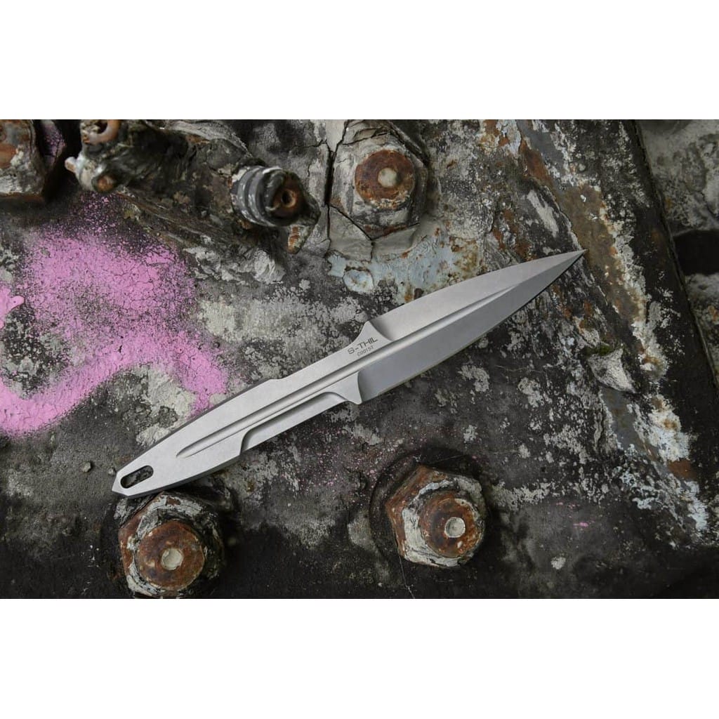 S-Thil firmy Extrema Ratio to zapasowy nóż taktyczny o smukłym profilu, opracowany przy współpracy z Thilo Arnd Schillerem. Niezwykle wytrzymała monolityczna konstrukcja full tang została wykonana z jednego kawałka austriackiej stali nierdzewnej Bohler N690 o twardości 58 HRC. Charakteryzuje się wysoką odpornością na korozję i długim trzymaniem ostrości. Wykończenie jej metodą Stonewash pozostawia nieregularną powłokę dobrze maskującą rysy i zadrapania powstające podczas eksploatacji. Głownia o profilu Spear Point doskonale sprawdzi się do pchnięć i głębokiej penetracji. Przemyślana rękojeść posiada zagłębienie zwiększające kontrolę nad nożem i wyprofilowanie chroniące palce przed ich zsunięciem się na krawędź tnącą. Na zakończeniu umieszczono otwór umożliwiający przełożenie breloka ozdobnego lub paracordu, który ułatwi chwytanie narzędzia. W zestawie znajduje się pochwa z formowanego wtryskowo nylonu kompatybilna z systemem Molle, wyposażona w taśmę do przełożenia paska. Dodatkowo liczne otwory na jej krawędzi pozwalają na troczenie noża do ekwipunku. Do kompletu dołączono również paracord z ogranicznikiem, dzięki czemu możemy wygodnie całość przenosić na karku. S-thil to gwarancja wydajności na najwyższym poziomie i niezawodności w każdych warunkach, dlatego stanowi idealny wybór do kolekcji. Extrema Ratio to włoska manufaktura z siedzibą w Prato, w regionie Toskanii. Firma od 1997 roku mistrzowsko projektuje niesamowicie mocne narzędzia taktycznie i myśliwskie, które nie mają sobie równych w przemyśle militarnym. Produkcja opiera się jedynie na wysokiej jakości materiałach i najnowocześniejszych technologiach. Co w połączeniu z tradycyjnym rzemiosłem i ręcznym wykończeniem każdego egzemplarza tworzy produkt spełniający najostrzejsze normy wojskowe.