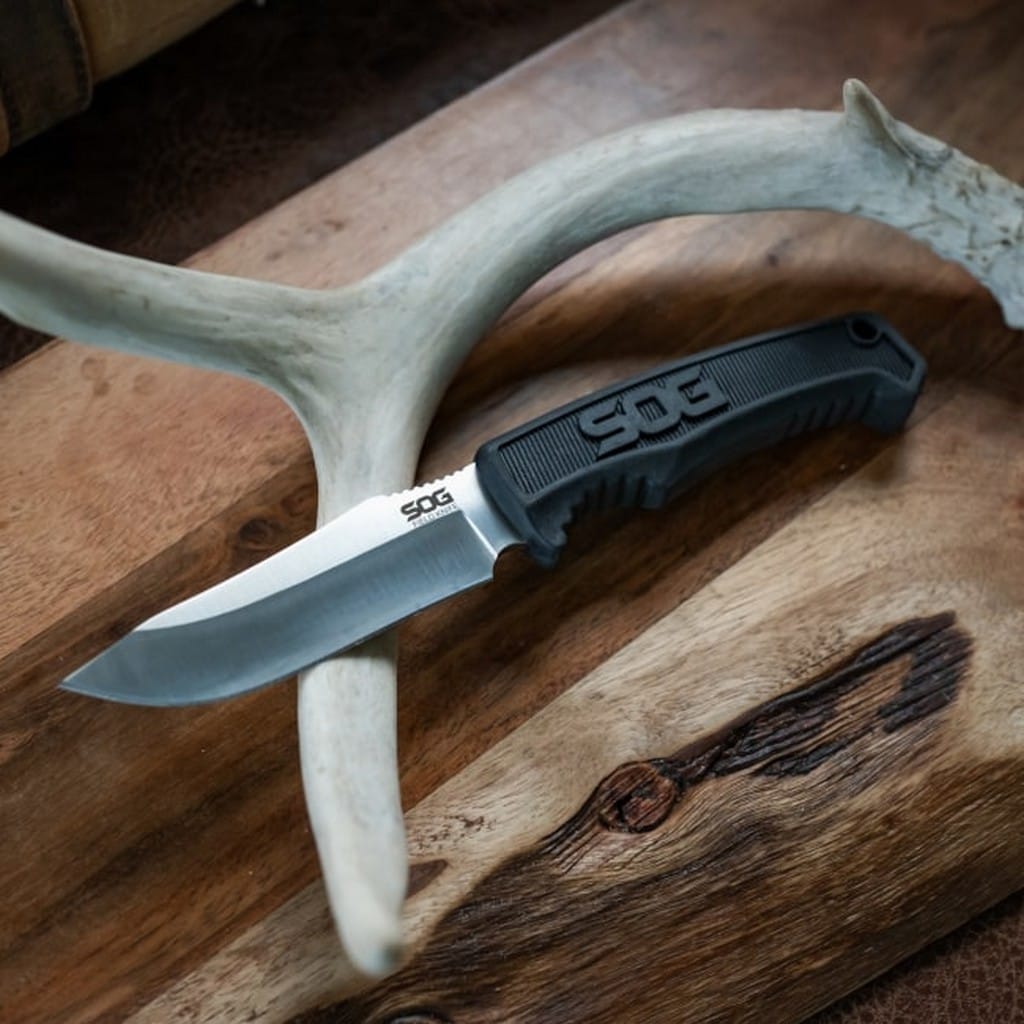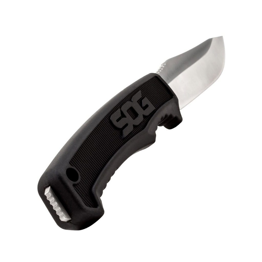 Lekki i kompaktowy nóż z ostrzem stałym zaprojektowany dla wszystkich miłośników survivalu i turystyki. Jego waga nie obciąży znacznie bagażu, a ostrze z pewnością spełni swoją funkcję w wielu zadaniach polowych. Głownia wykonana ze stali nierdzewnej 7Cr17MoV została wykończona metodą Satin pozostawiając drobne ryski lekko matujące powierzchnię. Gumowa rękojeść zapewnia wysoki komfort pracy i odpowiednią przyczepność do dłoni. Jej stalowe zakończenie może w awaryjnej sytuacji posłużyć jako zbijak do szyb. Karbowana górna krawędź głowni stanowi doskonałe oparcie dla palca zwiększając jednocześnie bezpieczeństwo użytkowania. W zestawie znajduje się pochwa z nylonu wzmocnionego włóknem szklanym wyposażona w klips mocujący, co pozwala na jej doczepienie do paska lub wyposażenia. Dodatkowo specjalna budowa pokrowca umożliwia cięcie lin czy taśm bez konieczności wyciągania noża z pochwy.