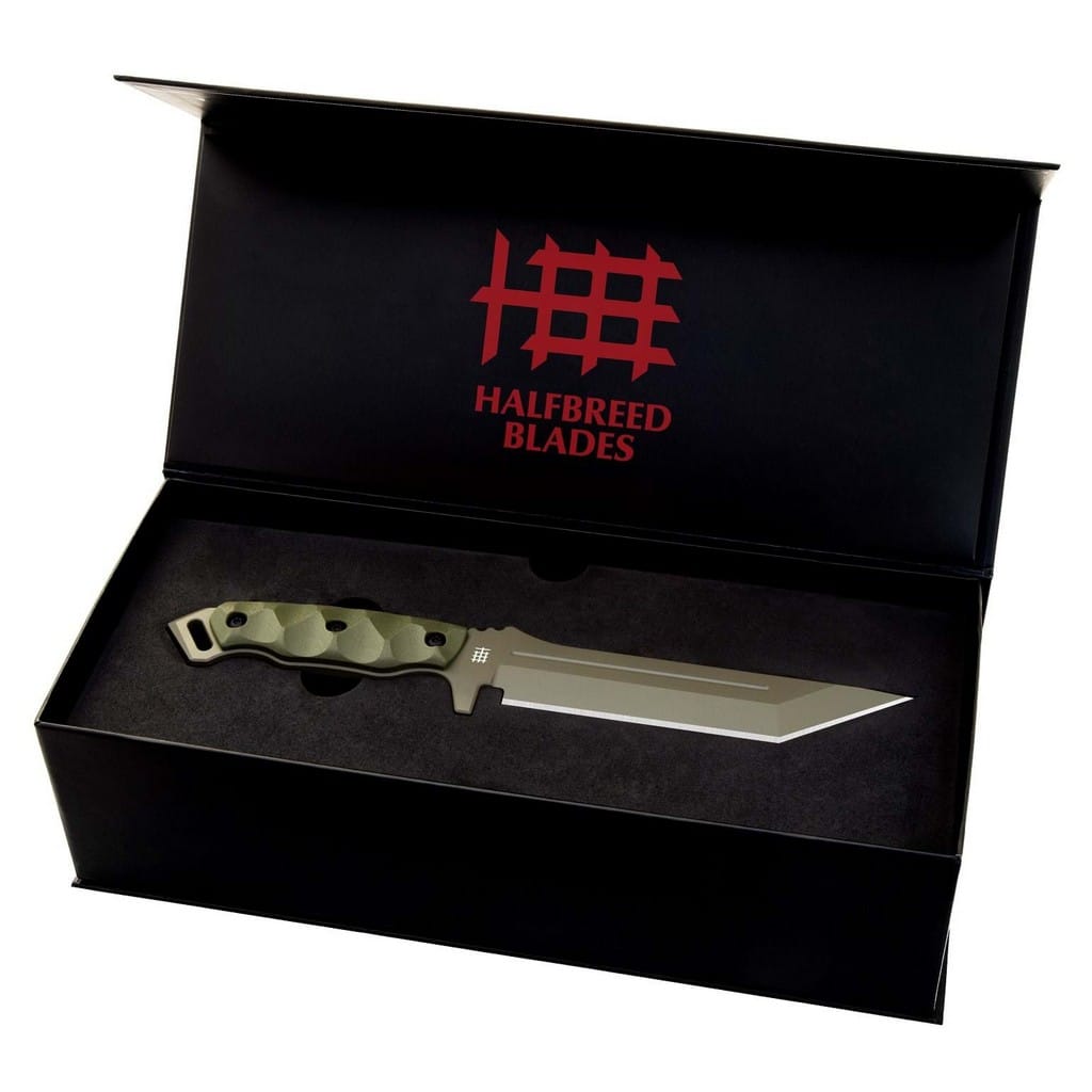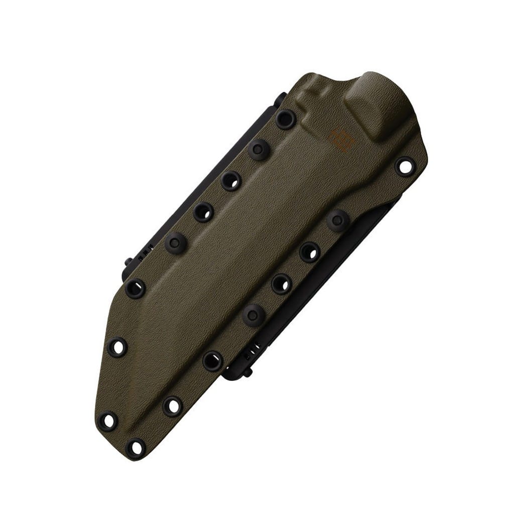 Medium Infantry MIK-05P to niezwykle wydajny nóż dla elitarnych jednostek wojskowych i służb bezpieczeństwa oraz kolekcjonerów poszukujących bezawaryjnego narzędzia. Zaprojektowany przez australijską firmę Halfbreed Blades dostarczającą wysoce wyspecjalizowane modele zgodne z wymaganiami konkretnych użytkowników. Inteligentne podejście i najwyższa jakość przekłada się na projekty bez kompromisu w zakresie materiałów i technik produkcji. Każdy tworzony produkt jest rygorystycznie testowany, aby spełniał potrzeby profesjonalistów i zapewniał wyjątkową efektywność w najbardziej ekstremalnych warunkach. Jednoczęściowa konstrukcja full tang gwarantuje wytrzymałość i niezawodność podczas intensywnej pracy. Gruba na sześć milimetrów klinga została wykonana z austriackiej stali narzędziowej Bohler K340 ISODUR. Wysoki poziom chromu i molibdenu oraz dodatek wanadu sprawiają, że jest wytrzymała, odporna na zużycie, wykruszenia oraz korozję i utlenianie. Ostrze o profilu Tanto doskonale sprawdzi się do taktycznego zastosowania. W celu zabezpieczenia głowni przed negatywnym działaniem czynników zewnętrznych pokryto ją antyodblaskową powłoką teflonową w zielonym kolorze. Bezpieczeństwo gwarantuje jelec chroniący palce przed ich przypadkowym zsunięciem się na krawędź tnącą i skaleczeniem. Karbowany grzbiet klingi stanowi stabilne wsparcie dla kciuka i jest pomocne przy precyzyjnych zadaniach. Teksturowane okładziny chwytu z G10, wyprodukowanego w USA, charakteryzują się ergonomicznym wyprofilowaniem, co wpływa na dobrą przyczepność do dłoni w każdym środowisku. Stalowa głowica w awaryjnej sytuacji może posłużyć do rozbijania szyb lub kruszenia innych przedmiotów. Na zakończeniu umieszczono podłużny otwór na linkę umożliwiający przełożenie paracordu i stworzenie oplotu na nadgarstek. W zestawie znajduje się pochwa z kydexu wyposażona w mocowanie DOTS kompatybilne z systemem Molle/Pals, dzięki któremu z łatwością doczepimy nóż do kamizelki lub innego wyposażenia. Do kompletu dołączono również klamrę DOTS, pozwalającą na wygodne transportowanie narzędzia na pasku spodni, blisko ciała. Całość zapakowano w pudełko wyłożone miękką pianką wraz z kopertą zawierającą naszywkę, naklejkę winylową oraz certyfikat autentyczności. MIK-05P to wierny towarzysz, który przetrwa najtrudniejsze warunki i ułatwi pokonywanie niecodziennych wyzwań.