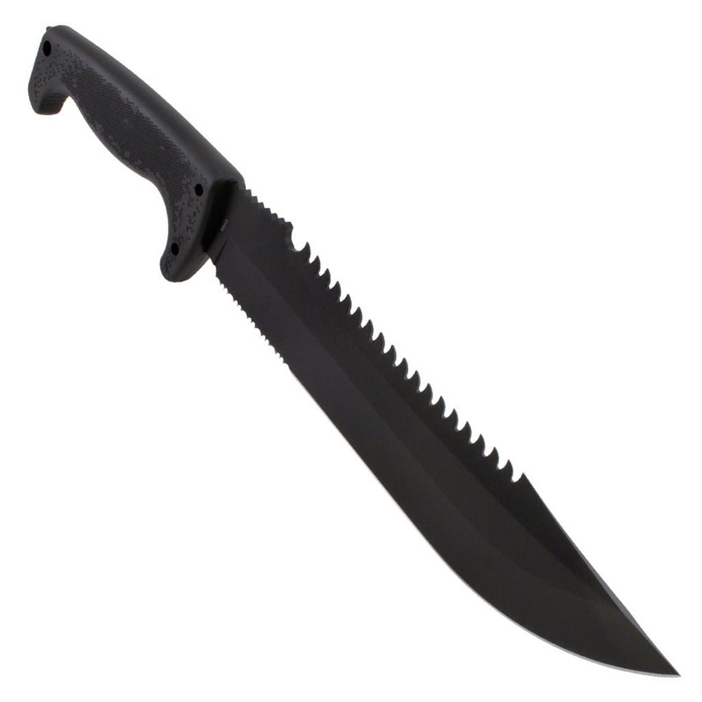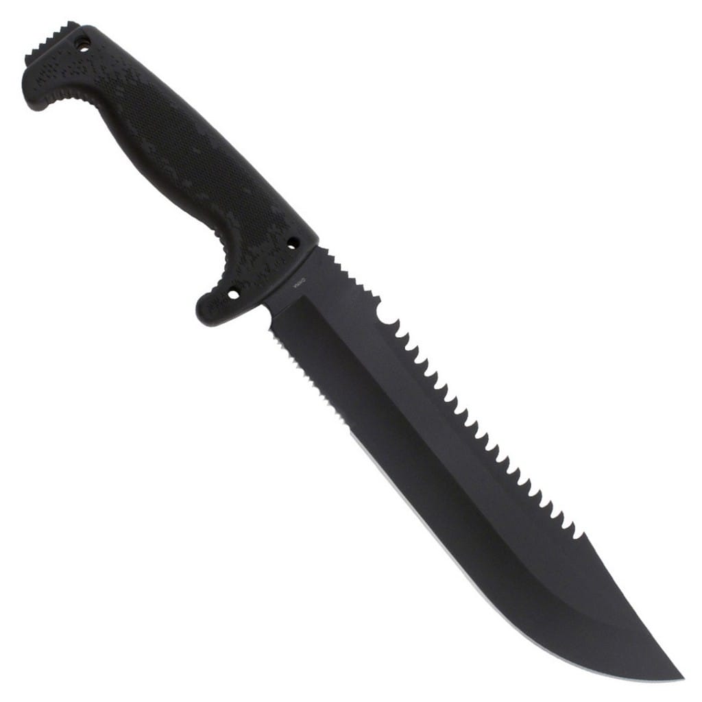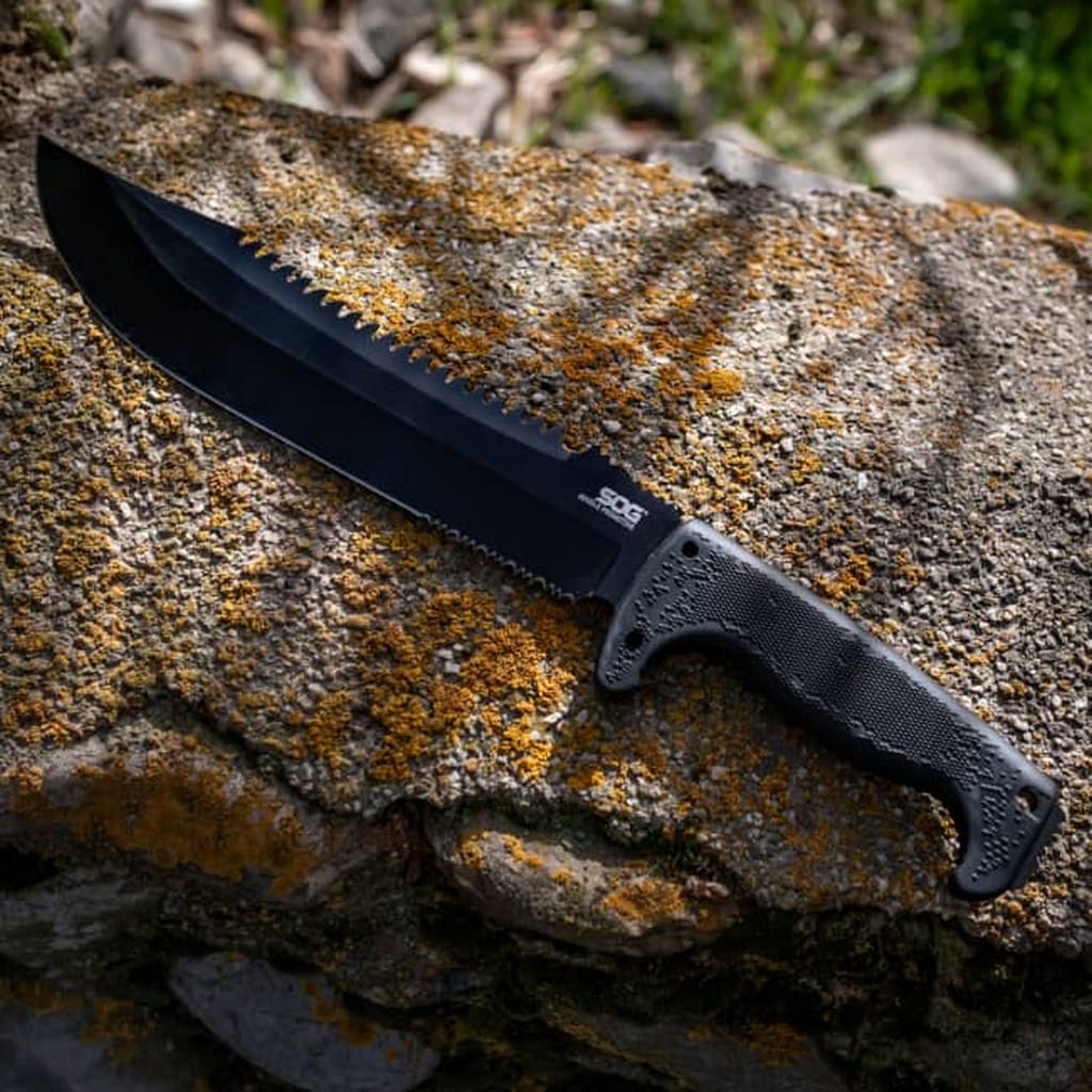 Jungle Primitive to sporych rozmiarów nóż stały zaprojektowany przez firmę SOG. Jego wszechstronne zastosowanie świetnie sprawdzi się na wyprawach za miasto, a nawet przy pracach w ogrodzie. Żadne zadanie mu nie straszne od rąbania, siekania, cięcia, piłowania, a nawet może posłużyć za młotek. Ostrze zostało wykonane ze stali 8Cr13MoV, która cechuje się świetną wytrzymałością oraz ostrością. Rękojeść z kratonu zapewnia pewne i wygodne trzymanie w każdych warunkach pogodowych. Do zestawu została dołączona nylonowa pochwa z małą kieszonką z przodu, w której można przenosić krzesiwo, ostrzałkę czy inne potrzebne elementy na wyprawie.