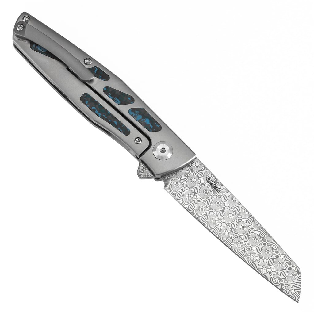 Marco Villella Rodio to włoski knifemaker, któremu pasja do noży towarzyszy od dzieciństwa. Przy współpracy z firmą Kansept Knives zaprojektował funkcjonalny model Cru z myślą o codziennym wykorzystaniu. Ostrze o profilu Wharncliffe wykonano ze stali damasceńskiej z ciekawym wzorem dobrze ukrywającym niedoskonałości powstające podczas eksploatacji. Klingę osadzono na ceramicznych łożyskach kulkowych, która przy wykorzystaniu flippera, pełniącego również funkcję jelca wysuwa się płynnie i gładko. Prosta obsługa jedną ręką zadowoli zarówno osoby prawo, jak i leworęczne. Bezpieczeństwo pracy zapewnia solidny i niezawodny mechanizm Frame Lock skutecznie blokujący narzędzie po rozłożeniu. Tytanową rękojeść wzbogacono o eleganckie wstawki z unikatowego materiału Fatcarbon, co tworzy estetyczną całość. Konstrukcję uzupełnia klips mocujący z tytanu służący do wygodnego przenoszenia foldera w kieszeni spodni. W zestawie znajduje się ściereczka z mikrofibry, wysokiej jakości pokrowiec transportowy oraz czarne pudełko prezentowe. Kansept Knives to uosobienie najnowocześniejszych technologii i praktycznego wzornictwa. Jej motto brzmi “Nie tylko produkujemy noże, czynimy je lepszymi”, co doskonale oddaje charakter tej marki. Firma wyróżnia się z tłumu innowacyjnymi koncepcjami angażując do współpracy najlepszych designerów z branży. Każdy element jest skrupulatnie obrabiany za pomocą zaawansowanych maszyn lub ręcznie, oferując znakomite połączenie kunsztu i estetyki.