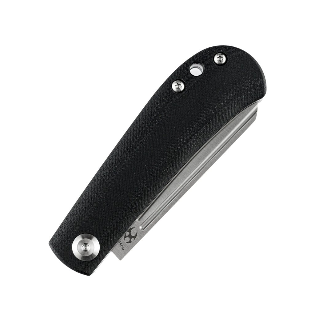 Nick Swan to emerytowany, amerykański funkcjonariusz organu ochrony porządku publicznego. Potrzebował noża do codziennego użytku, któremy mógłby zaufać. Na myśl przychodził mu scyzoryk dziadka, dając w ten sposób początek modelowi Bevy. Jest to kompaktowy folder o klasycznym wyglądzie i niezawodnej konstrukcji. Ostrze o profilu Sheepsfoot wykonano z amerykańskiej stali nierdzewnej 154CM odpornej na korozję, wytrzymałej i długo utrzymującej właściwą ostrość krawędzi tnącej. Wykończenie jej metodą Satin pozostawia drobne ryski lekko matujące powierzchnię, co daje efekt niedokładnego wypolerowania. Klingę osadzono na ceramicznych łożyskach kulkowych, która przy wykorzystaniu podłużnego, obustronnego zagłębieniu na paznokieć, wysuwa się płynnie i gładko. Prosta obsługa jedną ręką zadowoli zarówno osoby prawo jak i leworęczne. Zastosowana blokada Slip Joint powoduje, że głownia rozkłada się dzięki sprężynie, a do jej złożenia należy użyć odpowiedniej siły. Gładka rękojeść z lekkiego i wytrzymałego tworzywa G10 dobrze układa się w dłoni. Na jej zakończeniu umieszczono otwór umożliwiający przełożenie paracordu lub breloka ozdobnego, co ułatwi chwytanie noża. W zestawie znajduje się ściereczka z mikrofibry oraz wysokiej jakości pokrowiec do bezpiecznego transportowania narzędzia, a całość zapakowano w czarne pudełko prezentowe. Kansept Knives to uosobienie najnowocześniejszych technologii i praktycznego wzornictwa. Jej motto brzmi “Nie tylko produkujemy noże, czynimy je lepszymi”, co doskonale oddaje charakter tej marki. Firma wyróżnia się z tłumu innowacyjnymi koncepcjami angażując do współpracy najlepszych projektantów z branży. Każdy element obrabiany jest skrupulatnie ręcznie lub za pomocą zaawansowanych maszyn, co tworzy znakomite połączenie kunsztu i estetyki.