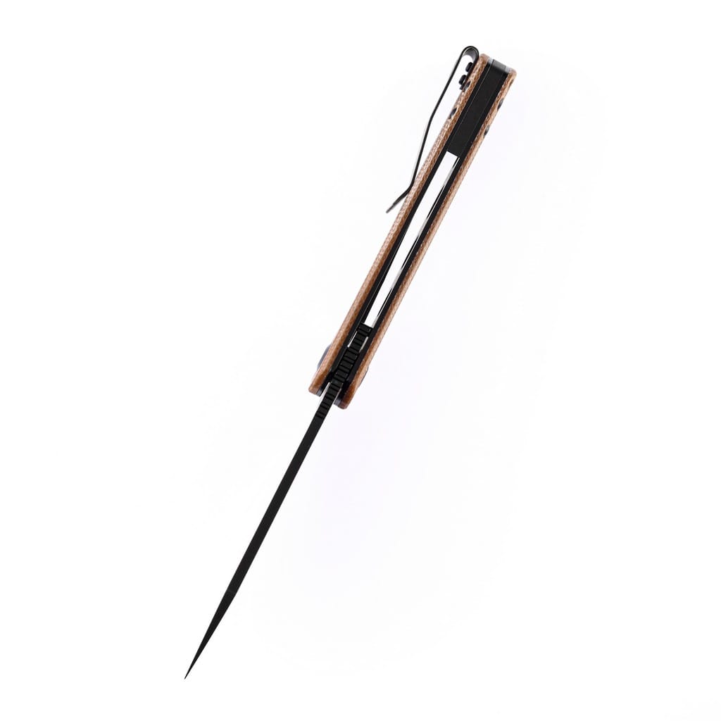 Bulldozer to folder EDC zaprojektowany dla firmy Kansept Knives przez Kima Ning, knifemakera z ponad 20 letnim doświadczeniem dbającego o każdy szczegół. Głownia o profilu Reverse Tanto została wykonana z wysokiej jakości stali narzędziowej D2 o świetnej wydajności cięcia, twardej i odpornej na zużycie. W celu ochrony przed negatywnym działaniem czynników zewnętrznych, korozją i odblaskami pokryto ją czarną powłoką TiCN (węgloazotek tytanu). Klingę osadzono na ceramicznych łożyskach kulkowych, która przy wykorzystaniu front flippera wysuwa się płynnie i gładko. Prosta obsługa jedną ręką zadowoli zarówno osoby prawo jak i leworęczne. Bezpieczeństwo pracy zapewnia klasyczny mechanizm Liner Lock blokujący narzędzie po rozłożeniu, a także karbowany grzbiet ostrza dający stabilne wsparcie dla kciuka, co jest niezwykle przydatne przy precyzyjnych zadaniach. Rękojeść z brązowej Micarty, dzięki wgłębieniu pod palec gwaranuje pewny chwyt i komfort użytkowania. Na zakończeniu umieszczono otwór umożliwiający przełożenie breloka ozdobnego lub paracordu. Konstrukcję uzupełnia klips mocujący, pozwalający na wygodne przenoszenie noża w kieszeni spodni lub przy wyposażeniu. W zestawie znajduje się ściereczka z mikrofibry oraz wysokiej jakości pokrowiec do bezpiecznego transportowania narzędzia, a całość zapakowano w czarne pudełko prezentowe. Kansept Knives to uosobienie najnowocześniejszych technologii i praktycznego wzornictwa. Jej motto brzmi “Nie tylko produkujemy noże, czynimy je lepszymi”, co doskonale oddaje charakter tej marki. Firma wyróżnia się z tłumu innowacyjnymi koncepcjami angażując do współpracy najlepszych projektantów z branży. Każdy element obrabiany jest skrupulatnie ręcznie lub za pomocą zaawansowanych maszyn, co tworzy znakomite połączenie kunsztu i estetyki.