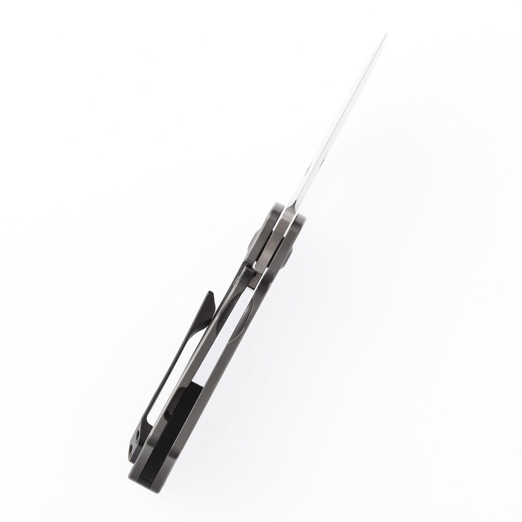 Marshall Noble projektuje noże od 2002 roku, a tworzenie ich postrzega jako formę sztuki. Goblin firmy Kansept, który wyszedł spod jego ręki, to kompaktowy folder do codziennego noszenia, cechujący się wysoką jakością i niezawodnością. Szerokie ostrze o profilu Sheepsfoot zostało zrobione z amerykańskiej stali nierdzewnej klasy premium CPM S35VN. Odpowiednio dobrane proporcje wanadu i niobu wpływają na jej twardość, wytrzymałość i odporność na korozję. Wykończenie jej metodą Stonewash pozostawia nieregularną powłokę dobrze maskującą rysy i zadrapania powstające podczas eksploatacji. Klingę osadzono na ceramicznych łożyskach kulkowych, która przy wykorzystaniu otworu na głowni lub front flippera wysuwa się płynnie i gładko. Prosta obsługa jedną ręką zadowoli zarówno osoby prawo jak i leworęczne. Bezpieczeństwo użytkowania zapewnia solidny i niezawodny mechanizm Frame Lock blokujący narzędzie po rozłożeniu oraz karbowany grzbiet ostrza stanowiący stabilne podparcie dla kciuka. Rękojeść z tytanu mimo niewielkich rozmiarów, dzięki wyprofilowaniu pod palec, pozwala na komfortowy chwyt. Konstrukcję uzupełnia klips mocujący umożliwiający wygodne przenoszenie noża w kieszeni spodni. W zestawie znajduje się ściereczka z mikrofibry oraz wysokiej jakości pokrowiec do bezpiecznego transportowania produktu, a całość zapakowano w czarne pudełko prezentowe. Kansept Knives to uosobienie najnowocześniejszych technologii i praktycznego designu. Jej motto brzmi “Nie tylko produkujemy noże, czynimy je lepszymi”, co doskonale oddaje charakter tej marki. Firma wyróżnia się z tłumu innowacyjnymi koncepcjami angażując do współpracy najlepszych projektantów z branży. Każdy element obrabiany jest skrupulatnie ręcznie lub za pomocą zaawansowanych maszyn, co tworzy znakomite połączenie kunsztu i estetyki.