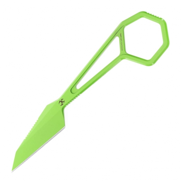 Hex firmy Kansept to kompaktowy nóż z ostrzem stałym zaprojektowany przez uzdolnionego polskiego knifemakera Ostapa Hela. Opiera on wszystkie swoje projekty na podstawowej geometrii, płynnych przejściach i koncepcji złotego podziału. Model w całości został wykonany ze szwedzkiej stali nierdzewnej Sandvik 14C28N o bardzo dobrej odporności na korozję i odpowiednio twardej. W celu zabezpieczenia jej przed negatywnym działaniem czynników zewnętrznych pokryto ją jasnozieloną powłoką ochronną. Dodatkowo jaskrawy kolor ułatwi namierzenie narzędzia gdy zgubimy je w terenie. Głownia o profilu Wharncliffe świetnie sprawdzi się do codziennych zadań. Szkieletowa rękojeść minimalizuje wagę konstrukcji, a znajdująca się na jej zakończeniu okrągła głowica na palec ułatwia chwyt i zwiększa kontrolę nad nożem. Użytkownik dla poprawy komfortu pracy może owinąć ją paracordem lub materiałem wedle indywidualnych preferencji. W zestawie znajduje się ściereczka z mikrofibry oraz pochwa z tworzywa wraz z łańcuszkiem kulkowym. Dzięki czemu możemy bezpiecznie przenosić narzędzie na karku, tak aby mieć je zawsze ze sobą, blisko ciała. Kansept Knives to uosobienie najnowocześniejszych technologii i praktycznego wzornictwa. Jej motto brzmi “Nie tylko produkujemy noże, czynimy je lepszymi”, co doskonale oddaje charakter tej marki. Firma wyróżnia się z tłumu innowacyjnymi koncepcjami angażując do współpracy najlepszych projektantów z branży. Każdy element obrabiany jest skrupulatnie ręcznie lub za pomocą zaawansowanych maszyn, co tworzy znakomite połączenie kunsztu i estetyki.