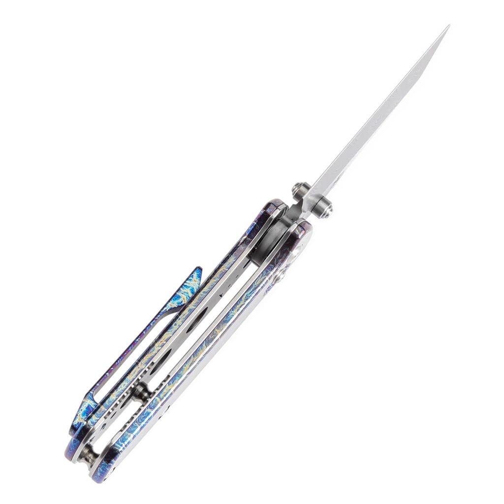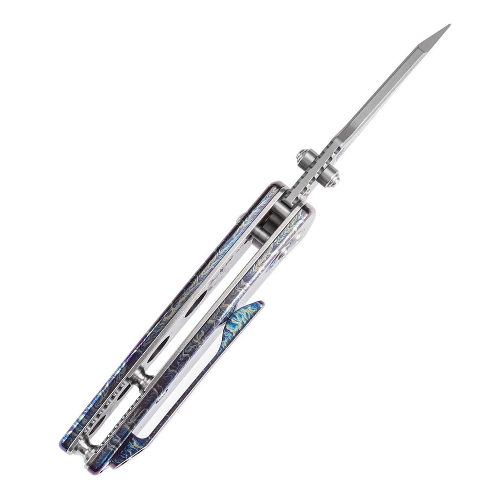 Little Main Street firmy Kansept Knives to kompaktowy folder o prostej budowie, zaprojektowany przez Dirka Pinkertona z myślą o codziennym użytkowaniu. Model cechuje się wysoką jakością wykonania, gwarantującą niezawodność i wydajność na najwyższym poziomie. Głownia o profilu Wharncliffe została zrobiona ze stali damasceńskiej o interesującym wzorze, bardzo dobrze ukrywającym wszelkie niedoskonałości powstające podczas eksploatacji. Klingę osadzono na ceramicznych łożyskach kulkowych, która przy wykorzystaniu kołka wysuwa się płynnie i gładko. Prosta obsługa jedną ręką zadowoli zarówno osoby prawo, jak i leworęczne. Wysoki poziom bezpieczeństwa zapewnia mechanizm Crossbar Lock w postaci obustronnego bolca na rękojeści i wewnętrznych sprężyn, przypominających literę omega. Dodatkowo karbowany grzbiet ostrza stanowi stabilne wsparcie dla kciuka, co ułatwia precyzyjną pracę. Tytanowe okładziny o unikatowym wykończeniu, mimo niewielkich rozmiarów, a dzięki frezowanym krawędziom komfortowo układają się w dłoni. Konstrukcję uzupełnia klips mocujący pozwalający na wygodne przenoszenie noża w kieszeni spodni. W zestawie znajduje się ściereczka z mikrofibry oraz gatunkowy pokrowiec do bezpiecznego transportowania foldera, a całość zapakowano w czarne pudełko prezentowe. Little Main Street doskonale sprawdzi się jako eleganckie dopełnienie garderoby na wieczorną kolację lub firmowe spotkanie. Kansept Knives to uosobienie najnowocześniejszych technologii i praktycznego wzornictwa. Jej motto brzmi “Nie tylko produkujemy noże, czynimy je lepszymi”, co doskonale oddaje charakter tej marki. Firma wyróżnia się z tłumu innowacyjnymi koncepcjami angażując do współpracy najlepszych projektantów z branży. Każdy element obrabiany jest skrupulatnie ręcznie lub za pomocą zaawansowanych maszyn, co tworzy znakomite połączenie kunsztu i estetyki.