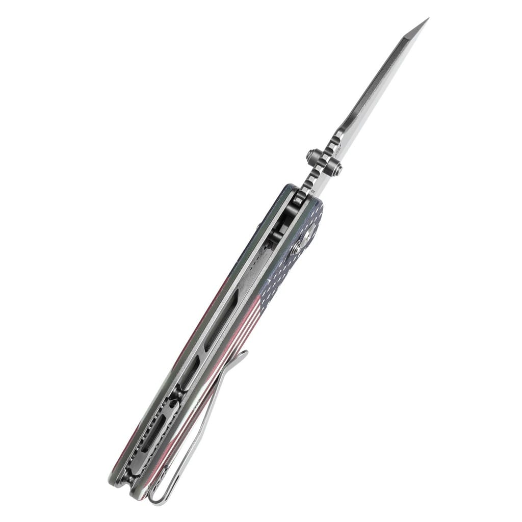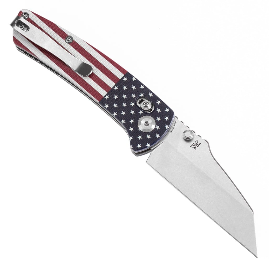 Main Street firmy Kansept Knives to praktyczny folder o prostej budowie, zaprojektowany przez Dirka Pinkertona do codziennego użytku. Model posiada ostrze o profilu Wharncliffe wykonane z amerykańskiej stali nierdzewnej 154CM odpornej na korozję, wytrzymałej i długo utrzymującej właściwą ostrość krawędzi tnącej. Wykończenie jej metodą Stonewash pozostawia nieregularną powłokę dobrze maskującą rysy powstające podczas eksploatacji. Klingę osadzono na ceramicznych łożyskach kulkowych, która przy wykorzystaniu obustronnego kołka wysuwa się płynnie i gładko. Prosta obsługa jedną ręką zadowoli zarówno osoby prawo jak i leworęczne. Wysoki poziom bezpieczeństwa zapewnia mechanizm Crossbar Lock, w postaci obustronnego bolca na rękojeści i wewnętrznych sprężyn przypominających literę omega. Dodatkowo karbowany grzbiet noża stanowi stabilne podparcie dla palców i ułatwia realizację zadań wymagających precyzji. Okładziny chwytu, z odpornego na warunki atmosferyczne materiału G10, zdobi amerykańska flaga. Konstrukcję uzupełnia klips mocujący ułatwiający wygodne przenoszenie foldera w kieszeni spodni lub przy wyposażeniu. W zestawie znajduje się ściereczka z mikrofibry oraz wysokiej jakości pokrowiec do bezpiecznego transportowania narzędzia, a całość zapakowano w czarne pudełko prezentowe. Kansept Knives uosabia najnowocześniejsze technologie i praktyczne wzornictwo. Jej motto brzmi “Nie tylko produkujemy noże, czynimy je lepszymi”, co doskonale oddaje charakter tej marki. Firma wyróżnia się z tłumu innowacyjnymi koncepcjami angażując do współpracy najlepszych projektantów z branży. Każdy element jest skrupulatnie obrabiany ręcznie lub za pomocą zaawansowanych maszyn, co stanowi znakomite połączenie kunsztu i estetyki.