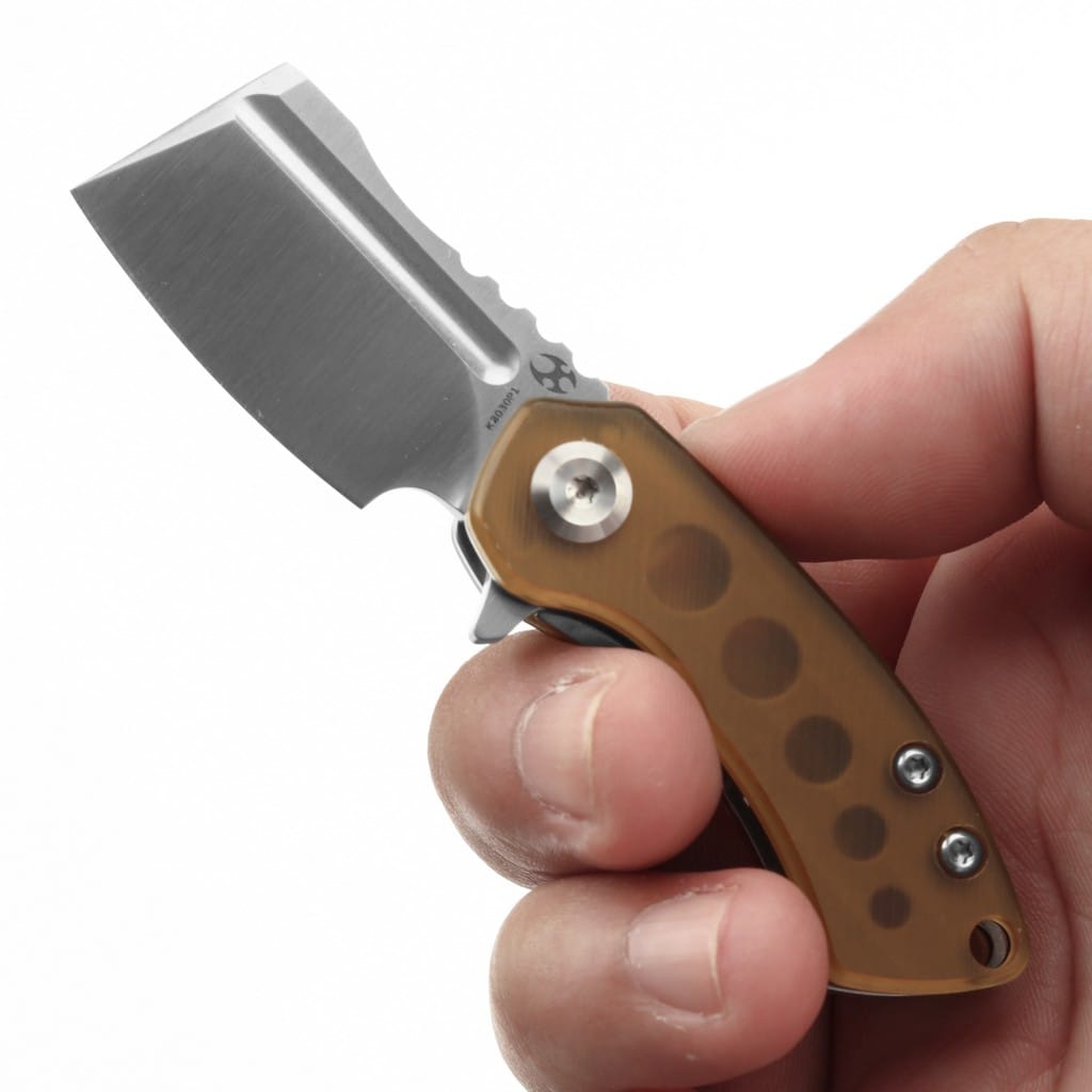 Justin Koch i firma Kansept Knives wspólnie stworzyli kieszonkowy model do codziennego użytku o nazwie Mini Korvid. Nożyk posiada niewielkie ostrze o profilu Cleaver wykonane z amerykańskiej stali nierdzewnej klasy premium CPM S35VN z odpowiednio dobranymi proporcjami wanadu i niobu, które wpływają na jej twardość, wytrzymałość i odporność na korozję. Wykończenie jej metodą Satin pozostawia drobne ryski lekko matujące powierzchnię, co daje efekt niedokładnego wypolerowania. Kształt głowni przypominający tasak świetnie przedziera się przez paczki, listy oraz odzież. Klingę osadzono na ceramicznych łożyskach kulkowych, która przy wykorzystaniu zagłębienia na ostrzu lub flippera, pełniącego również funkcję jelca, wysuwa się płynnie i gładko. Prosta obsługa jedną ręką zadowoli zarówno osoby prawo jak i leworęczne. Bezpieczeństwo pracy zapewnia klasyczny mechanizm Liner Lock blokujący narzędzie po rozłożeniu, a karbowany grzbiet głowni daje stabilne wsparcie dla kciuka. Ergonomicznie wyprofilowana rękojeść z mieszanki dwóch wytrzymałych tworzyw o bursztynowym kolorze gwarantuje oryginalny wygląd. Na zakończeniu umieszczono otwór umożliwiający przełożenie paracordu lub breloka ozdobnego, który ułatwi chwytanie noża. W zestawie znajduje się ściereczka z mikrofibry oraz wysokiej jakości pokrowiec do bezpiecznego transportowania narzędzia, a całość zapakowano w czarne pudełko prezentowe. Mini Korvid to malutki, lecz bardzo użyteczny i ostry gadżet, w którym zakocha się niejeden kolekcjoner. Kansept Knives uosabia najnowocześniejsze technologie i praktyczne wzornictwo. Jej motto brzmi “Nie tylko produkujemy noże, czynimy je lepszymi”, co doskonale oddaje charakter tej marki. Firma wyróżnia się z tłumu innowacyjnymi koncepcjami angażując do współpracy najlepszych projektantów z branży. Każdy element jest skrupulatnie obrabiany ręcznie lub za pomocą zaawansowanych maszyn, co stanowi znakomite połączenie kunsztu i estetyki.