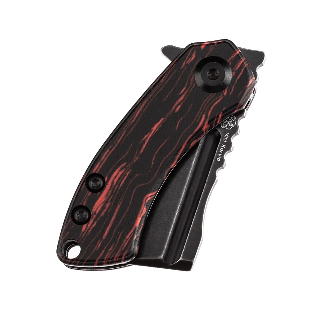 Justin Koch i firma Kansept Knives wspólnie stworzyli kieszonkowy model do codziennego użytku o nazwie Mini Korvid. Nożyk posiada niewielkie ostrze o profilu Cleaver wykonane z amerykańskiej stali nierdzewnej klasy premium CPM S35VN z odpowiednio dobranymi proporcjami wanadu i niobu, które wpływają na jej twardość, wytrzymałość i odporność na korozję. Wykończenie jej na czarno metodą Blackwash pozostawia nieregularną powłokę dobrze maskującą rysy i zadrapania powstające podczas eksploatacji. Kształt głowni przypominający tasak świetnie przedziera się przez paczki, listy oraz odzież. Klingę osadzono na ceramicznych łożyskach kulkowych, a przy wykorzystaniu zagłębienia na ostrzu lub flippera, pełniącego również funkcję jelca, wysuwa się płynnie i gładko. Prosta obsługa jedną ręką zadowoli zarówno osoby prawo jak i leworęczne. Bezpieczeństwo pracy zapewnia klasyczny mechanizm Liner Lock blokujący narzędzie po rozłożeniu, a karbowany grzbiet głowni daje stabilne wsparcie dla kciuka. Ergonomicznie wyprofilowana rękojeść została zrobiona z tworzywa G10 o niepowtarzalnym wyglądzie, podobnym do stali damasceńskiej, dzięki której materiał ten nazwano Gmascus. Na zakończeniu umieszczono otwór umożliwiający przełożenie paracordu lub breloka ozdobnego, ułatwiających chwytanie noża. W zestawie znajduje się ściereczka z mikrofibry oraz wysokiej jakości pokrowiec transportowy, a całość zapakowano w czarne pudełko prezentowe. Mini Korvid to malutki, lecz bardzo użyteczny i ostry gadżet, w którym zakocha się niejeden kolekcjoner. Kansept Knives uosabia najnowocześniejsze technologie i praktyczne wzornictwo. Jej motto brzmi “Nie tylko produkujemy noże, czynimy je lepszymi”, co doskonale oddaje charakter tej marki. Firma wyróżnia się z tłumu innowacyjnymi koncepcjami angażując do współpracy najlepszych projektantów z branży. Każdy element jest skrupulatnie obrabiany ręcznie lub za pomocą zaawansowanych maszyn i stanowi znakomite połączenie kunsztu i estetyki.