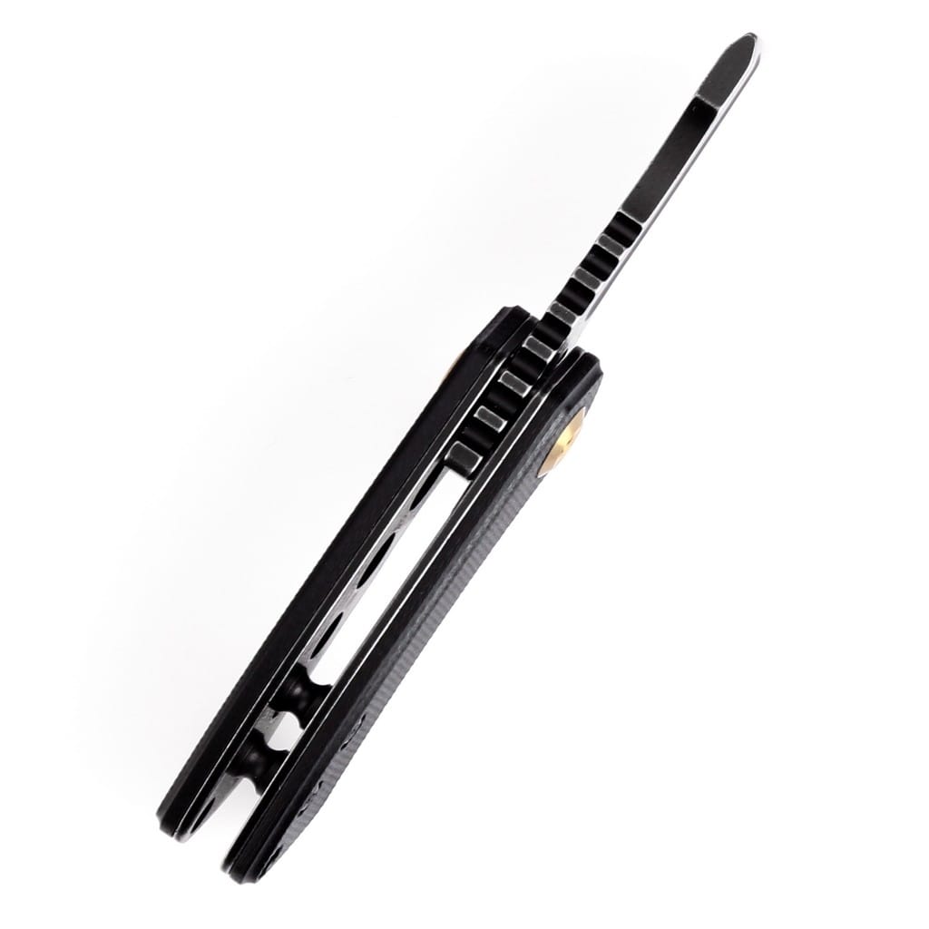 Justin Koch i firma Kansept Knives wspólnie stworzyli kieszonkowy model do codziennego użytku o nazwie Mini Korvid. Nożyk posiada niewielkie ostrze o profilu Cleaver wykonane z amerykańskiej stali nierdzewnej 154CM odpornej na korozję, wytrzymałej i długo utrzymującej właściwą ostrość krawędzi tnącej. Wykończono ją na czarno metodą Stonewash pozostawiającą nieregularną powłokę dobrze maskującą rysy powstające podczas eksploatacji. Kształt głowni przypominający tasak świetnie przedziera się przez paczki, listy oraz odzież. Klingę osadzono na ceramicznych łożyskach kulkowych, która przy wykorzystaniu zagłębienia na ostrzu lub flippera, pełniącego również funkcję jelca, wysuwa się płynnie i gładko. Prosta obsługa jedną ręką zadowoli zarówno osoby prawo jak i leworęczne. Bezpieczeństwo pracy zapewnia klasyczny mechanizm Liner Lock blokujący narzędzie po rozłożeniu, a karbowany grzbiet głowni daje stabilne podparcie dla kciuka. Rękojeść z lekkiego i wytrzymałego tworzywa G10 cechuje się antypoślizgową fakturą, co zwiększa przyczepność do dłoni. Na zakończeniu umieszczono otwór umożliwiający przełożenie paracordu lub breloka ozdobnego, który ułatwi chwytanie noża. W zestawie znajduje się ściereczka z mikrofibry oraz wysokiej jakości pokrowiec do bezpiecznego transportowania narzędzia, a całość zapakowano w czarne pudełko prezentowe. Mini Korvid to malutki, lecz bardzo użyteczny, ostry gadżet, w którym zakocha się niejeden kolekcjoner. Kansept Knives uosabia najnowocześniejsze technologie i praktyczne wzornictwo. Jej motto brzmi “Nie tylko produkujemy noże, czynimy je lepszymi”, co doskonale oddaje charakter tej marki. Firma wyróżnia się z tłumu innowacyjnymi koncepcjami angażując do współpracy najlepszych projektantów z branży. Każdy element jest skrupulatnie obrabiany ręcznie lub za pomocą zaawansowanych maszyn, co stanowi znakomite połączenie kunsztu i estetyki.