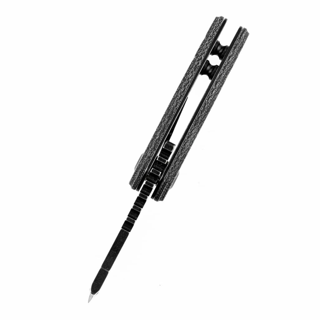 Justin Koch i firma Kansept Knives wspólnie stworzyli kieszonkowy model do codziennego użytku o nazwie Mini Korvid. Nożyk posiada niewielkie ostrze o profilu Cleaver wykonane z amerykańskiej stali nierdzewnej 154CM odpornej na korozję, wytrzymałej i długo utrzymującej właściwą ostrość krawędzi tnącej. W celu ochrony przed negatywnym działaniem czynników zewnętrznych pokryto ją czarną powłoką TiCN (węgloazotek tytanu). Kształt głowni przypominający tasak świetnie przedziera się przez paczki, listy oraz odzież. Klingę osadzono na ceramicznych łożyskach kulkowych, która przy wykorzystaniu zagłębienia na ostrzu lub flippera, pełniącego również funkcję jelca, wysuwa się płynnie i gładko. Prosta obsługa jedną ręką zadowoli zarówno osoby prawo jak i leworęczne. Bezpieczeństwo pracy zapewnia klasyczny mechanizm Liner Lock blokujący narzędzie po rozłożeniu, a karbowany grzbiet głowni daje stabilne wsparcie dla kciuka. Rękojeść z lekkiego i wytrzymałego tworzywa G10 o wyglądzie denimu cechuje się antypoślizgową fakturą, co zwiększa przyczepność do dłoni. Na zakończeniu umieszczono otwór umożliwiający przełożenie paracordu lub breloka ozdobnego, który ułatwi chwytanie noża. W zestawie znajduje się ściereczka z mikrofibry oraz wysokiej jakości pokrowiec do bezpiecznego transportowania narzędzia, a całość zapakowano w czarne pudełko prezentowe. Mini Korvid to malutki, lecz bardzo użyteczny i ostry gadżet, w którym zakocha się niejeden kolekcjoner. Kansept Knives uosabia najnowocześniejsze technologie i praktyczne wzornictwo. Jej motto brzmi “Nie tylko produkujemy noże, czynimy je lepszymi”, co doskonale oddaje charakter tej marki. Firma wyróżnia się z tłumu innowacyjnymi koncepcjami angażując do współpracy najlepszych projektantów z branży. Każdy element jest skrupulatnie obrabiany ręcznie lub za pomocą zaawansowanych maszyn, co stanowi znakomite połączenie kunsztu i estetyki.