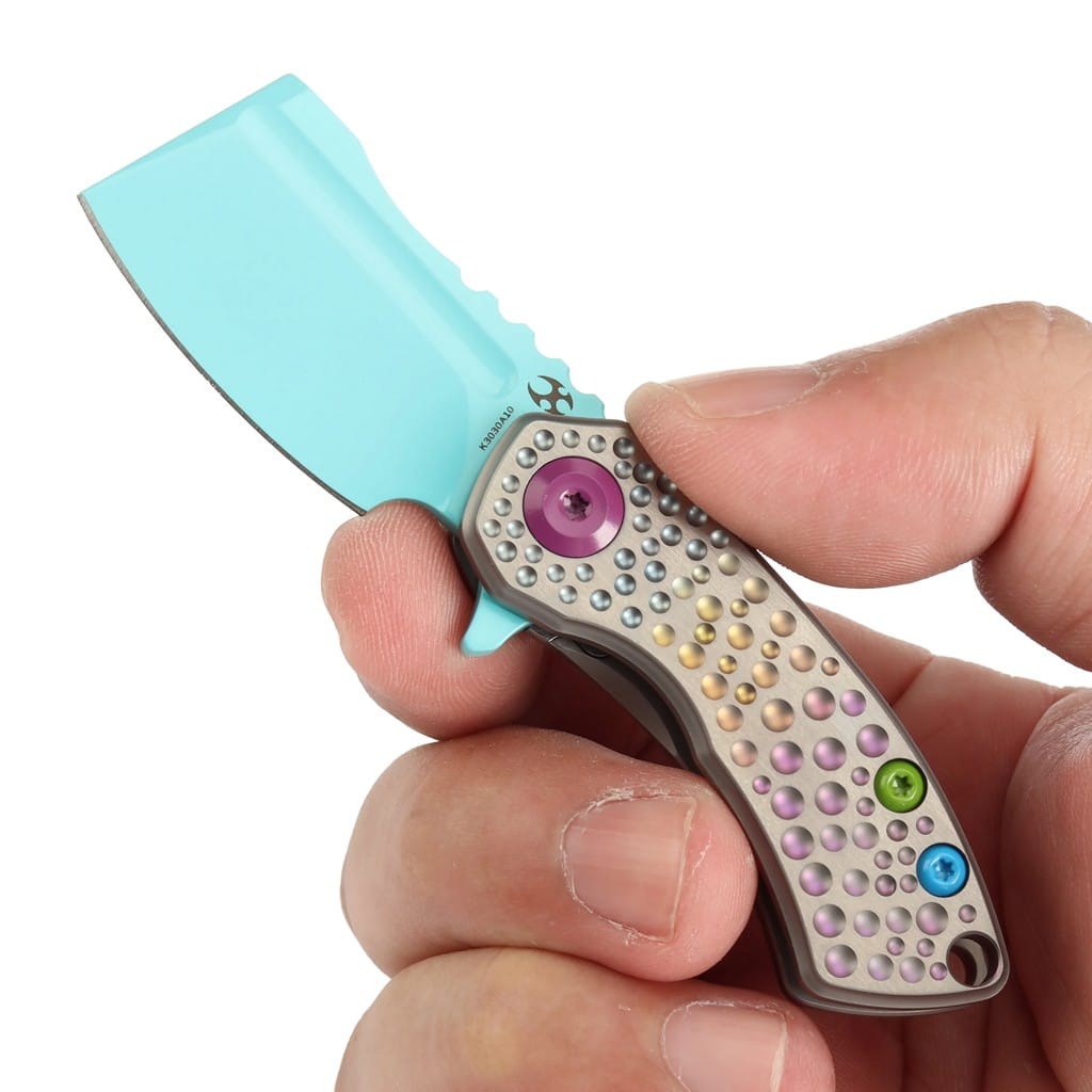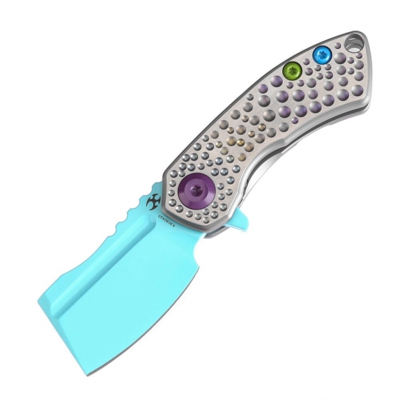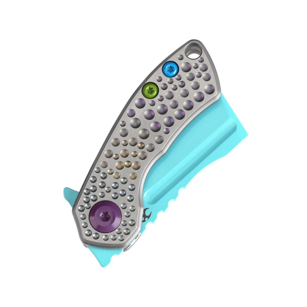 Justin Koch i firma Kansept Knives wspólnie stworzyli kieszonkowy model do codziennego użytku o nazwie Mini Korvid. Nożyk posiada niewielkie ostrze o profilu Cleaver wykonane z amerykańskiej stali nierdzewnej klasy premium CPM S35VN z odpowiednio dobranymi proporcjami wanadu i niobu, które wpływają na jej twardość, wytrzymałość i odporność na korozję. W celu ochrony przed negatywnym działaniem czynników zewnętrznych pokryto ją niebieską farbą. Kształt głowni przypominający tasak świetnie przedziera się przez paczki, listy oraz odzież. Klingę osadzono na ceramicznych łożyskach kulkowych, która przy wykorzystaniu zagłębienia na ostrzu lub flippera, pełniącego również funkcję jelca, wysuwa się płynnie i gładko. Prosta obsługa jedną ręką zadowoli zarówno osoby prawo, jak i leworęczne. Bezpieczeństwo pracy zapewnia solidny i niezawodny mechanizm Frame Lock blokujący narzędzie po rozłożeniu, a karbowany grzbiet ostrza daje stabilne wsparcie dla kciuka. Ergonomicznie wyprofilowana rękojeść z tytanu gwarantuje trwałość i elegancki wygląd. Uwagę przyciągają ozdobne, wklęsłe kropki na jej powierzchni oraz kolorowe śruby. Na zakończeniu umieszczono otwór umożliwiający przełożenie paracordu lub breloka ozdobnego, który ułatwi chwytanie noża. W zestawie znajduje się ściereczka z mikrofibry oraz wysokiej jakości pokrowiec do wygodnego transportowania narzędzia, a całość zapakowano w czarne pudełko prezentowe. Mini Korvid to malutki, lecz bardzo użyteczny i ostry gadżet, w którym zakocha się niejeden kolekcjoner. Kansept Knives to uosobienie najnowocześniejszych technologii i praktycznego wzornictwa. Jej motto brzmi “Nie tylko produkujemy noże, czynimy je lepszymi”, co doskonale oddaje charakter tej marki. Firma wyróżnia się z tłumu innowacyjnymi koncepcjami angażując do współpracy najlepszych projektantów z branży. Każdy element jest skrupulatnie obrabiany, za pomocą zaawansowanych maszyn lub ręcznie, tworząc znakomite połączenie kunsztu i estetyki.