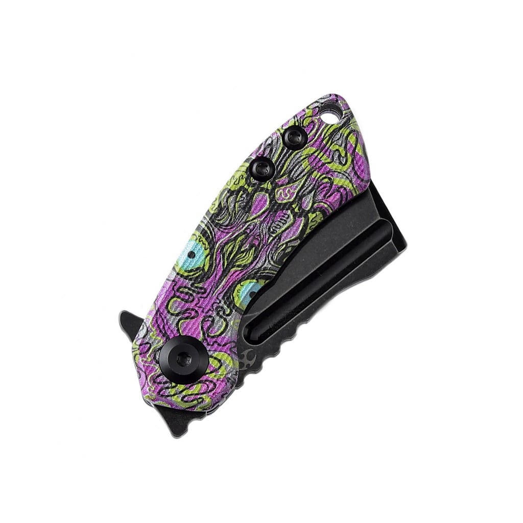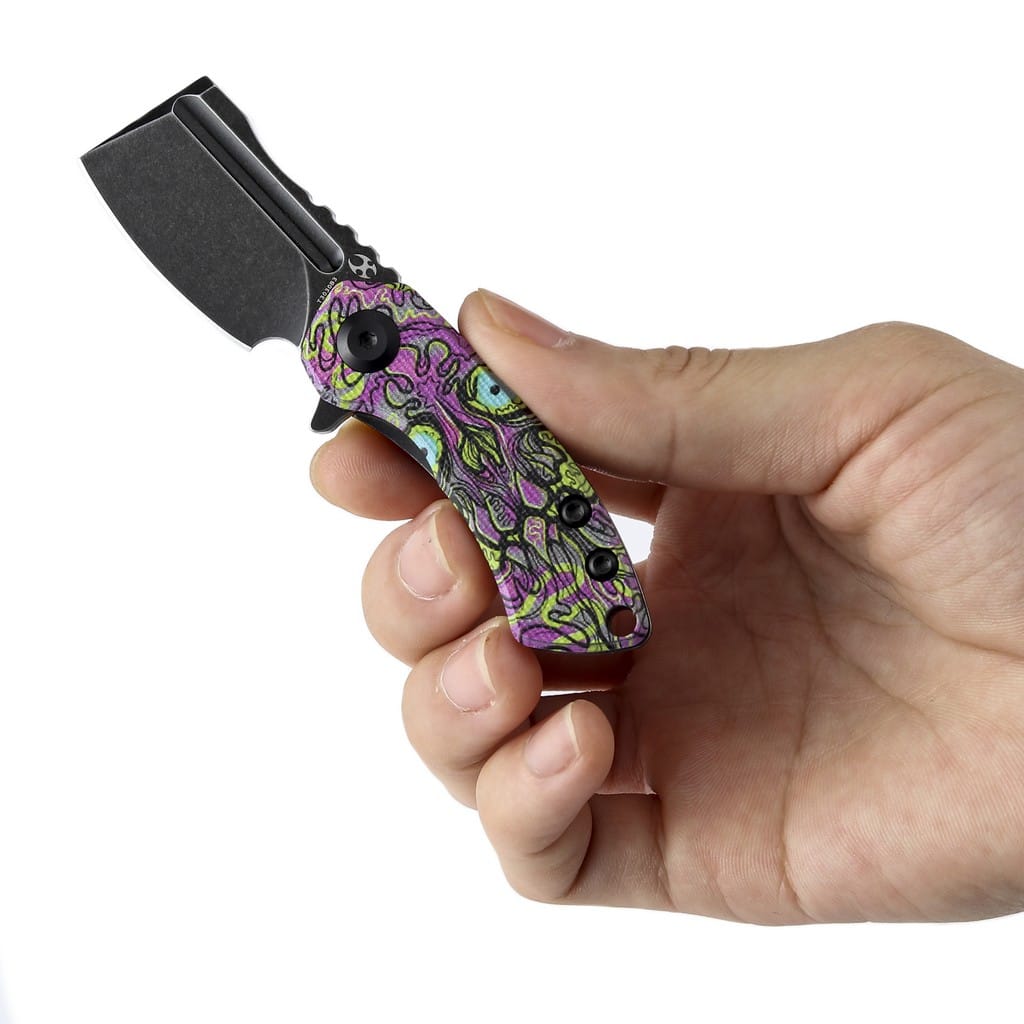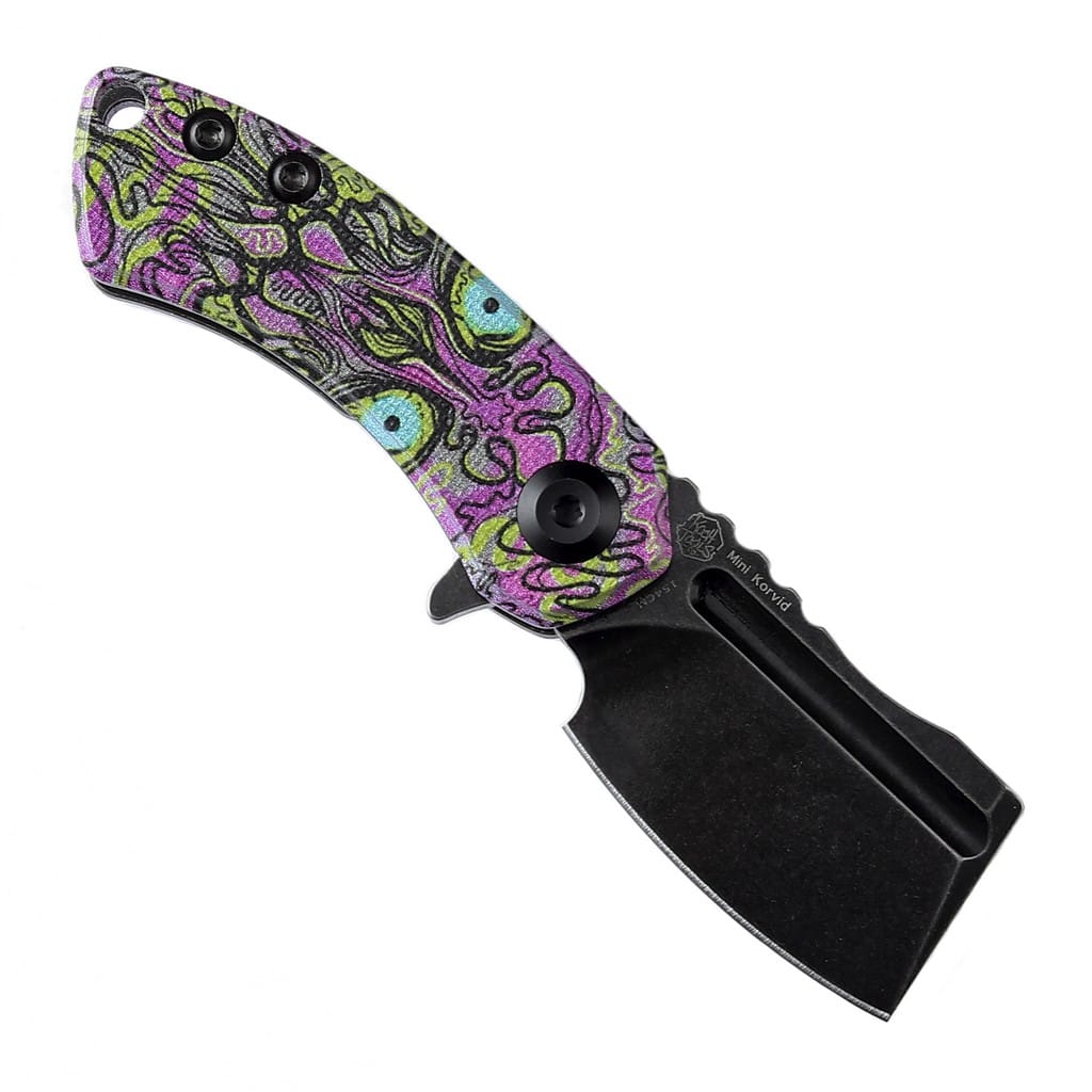 Justin Koch i firma Kansept Knives wspólnie stworzyli kieszonkowy model do codziennego użytku o nazwie Mini Korvid. Nożyk posiada niewielkie ostrze o profilu Cleaver wykonane z amerykańskiej stali nierdzewnej 154CM odpornej na korozję, wytrzymałej i długo utrzymującej właściwą ostrość krawędzi tnącej. Wykończono ją na czarno metodą Stonewash pozostawiającą nieregularną powłokę dobrze maskującą rysy powstające podczas eksploatacji. Kształt głowni przypominający tasak świetnie przedziera się przez paczki, listy oraz odzież. Klingę osadzono na ceramicznych łożyskach kulkowych, która przy wykorzystaniu obustronnego zagłębienia na ostrzu lub flippera, pełniącego również funkcję jelca, wysuwa się płynnie i gładko. Prosta obsługa jedną ręką zadowoli zarówno osoby prawo jak i leworęczne. Bezpieczeństwo pracy zapewnia klasyczny mechanizm Liner Lock blokujący narzędzie po rozłożeniu, a karbowany grzbiet głowni daje stabilne wsparcie dla kciuka. Rękojeść z odpornego na warunki atmosferyczne materiału G10, z ciekawym nadrukiem, cechuje się antypoślizgową fakturą, co zwiększa przyczepność do dłoni. Na zakończeniu umieszczono otwór umożliwiający przełożenie paracordu lub breloka ozdobnego, który ułatwi chwytanie noża. W zestawie znajduje się ściereczka z mikrofibry oraz wysokiej jakości pokrowiec do bezpiecznego transportowania narzędzia, a całość zapakowano w czarne pudełko prezentowe. Mini Korvid to malutki, lecz bardzo użyteczny i ostry gadżet, w którym zakocha się niejeden kolekcjoner. Kansept Knives uosabia najnowocześniejsze technologie i praktyczne wzornictwo. Jej motto brzmi “Nie tylko produkujemy noże, czynimy je lepszymi”, co doskonale oddaje charakter tej marki. Firma wyróżnia się z tłumu innowacyjnymi koncepcjami angażując do współpracy najlepszych projektantów z branży. Każdy element jest skrupulatnie obrabiany ręcznie lub za pomocą zaawansowanych maszyn, co stanowi znakomite połączenie kunsztu i estetyki.