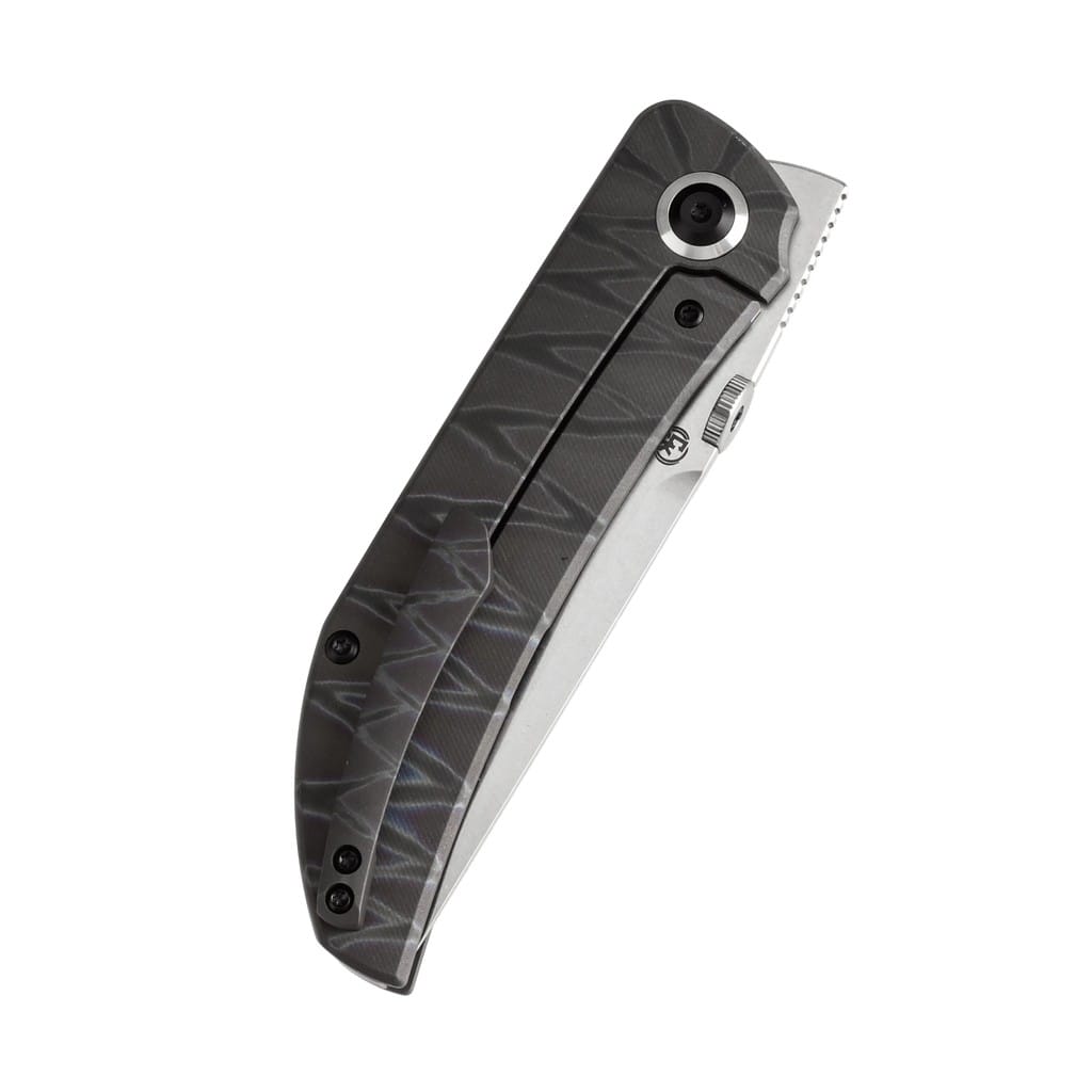Matthew Christensen przy współpracy z firmą Kansept zaprojektował funkcjonalny nóż dżentelmeński w minimalistycznym stylu. Model Tarkin charakteryzuje się wysoką jakością i precyzją wykonania, którą doceni niejeden kolekcjoner. Ostrze o zmodyfikowanym profilu Tanto zostało wykonane z amerykańskiej stali nierdzewnej klasy premium CPM 20CV o dużej zawartości chromu, co zwiększa odporność na korozję i pozwala długo utrzymać właściwą ostrość krawędzi tnącej. Wykończenie jej metodą Satin pozostawia drobne ryski lekko matujące powierzchnię, dające efekt niedokładnego wypolerowania. Klingę osadzono na ceramicznych łożyskach kulkowych, która przy wykorzystaniu dysku lub front flippera wysuwa się płynnie i gładko. Prosta obsługa jedną ręką zadowoli zarówno osoby prawo, jak i leworęczne. Bezpieczeństwo pracy zapewnia solidny i niezawodny mechanizm Frame Lock blokujący narzędzie po rozłożeniu, a karbowany grzbiet głowni stanowi stabilne wsparcie dla kciuka. Tytanową rękojeść zdobi unikatowe anodowanie w tygrysie pasy oraz różnej wielkości otwory. Konstrukcję uzupełnia klips mocujący zrobiony z tytanu, pozwalający na dyskretne przenoszenie foldera w kieszeni spodni. W zestawie znajduje się ściereczka z mikrofibry oraz gatunkowy pokrowiec transportowy, a całość zapakowano w czarne pudełko prezentowe. Model Tarkin to świetny dodatek do garderoby na spotkanie biznesowe lub wieczorne wyjście. Kansept Knives uosabia najnowocześniejsze technologii i praktyczne wzornictwo. Jej motto brzmi “Nie tylko produkujemy noże, czynimy je lepszymi”, co doskonale oddaje charakter tej marki. Firma wyróżnia się z tłumu innowacyjnymi koncepcjami angażując do współpracy najlepszych projektantów z branży. Każdy element jest skrupulatnie obrabiany, za pomocą zaawansowanych maszyn lub ręcznie, tworząc znakomite połączenie kunsztu i estetyki.