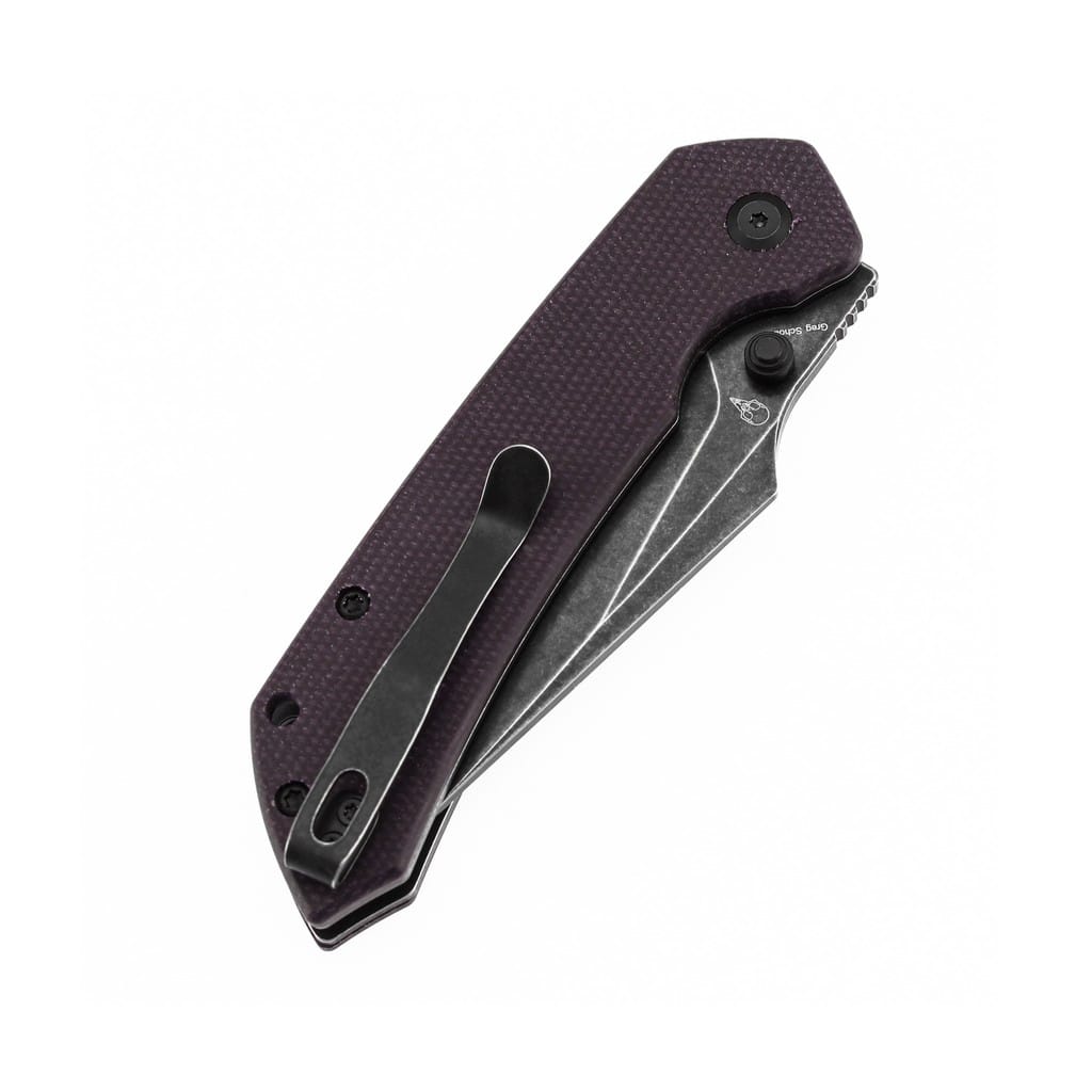 Fenrir to ciekawy folder EDC należący do przystępnej cenowo serii Tenable firmy Kansept Knives. Został zaprojektowany we współpracy z Gregiem Schobem, założycielem Sparrow Knife, który służy w Straży Przybrzeżnej USA na wybrzeżu Zatoki Meksykańskie, a w wolnych chwilach produkuje noże. Model posiada drapieżny kształt głowni o profilu Harpoon, wykonany ze stali nierdzewnej Nitro-V wzbogaconej o azot i wanad. Pierwiastki te zwiększają twardość i zapewniają wyjątkową wydajność krawędzi tnącej, a także odporoność na korozję, dzięki czemu folder idealnie sprawdzi się również w wilgotnym środowisku. Wykończenie ostrza na czarno metodą Blackwash pozostawia nieregularną powłokę dobrze maskującą rysy i zadrapania powstające podczas eksploatacji. Klingę osadzono na ceramicznych łożyskach kulkowych, która przy wykorzystaniu obustronnego kołka wysuwa się płynnie i gładko. Prosta obsługa jedną ręką zadowoli zarówno osoby prawo, jak i leworęczne. Niewielkie karbowanie na grzbiecie głowni stanowi wsparcie dla kciuka, a nad bezpieczeństwem czuwa blokada Top Liner Lock z przyciskiem na rękojeści, służącym do składania narzędzia. Okładziny z przyjemnej w dotyku purpurowej Micarty, dzięki wyprofilowaniu pod palce gwarantują pewny chwyt w każdej sytuacji. Na zakończeniu umieszczono otwór umożliwiający przełożenie breloka ozdobnego lub paracordu. Konstrukcję uzupełnia dwupozycyjny klips mocujący ułatwiający wygodne przenoszenie noża w kieszeni spodni lub przy wyposażeniu. Dodatkowo w zestawie znajduje się ściereczka z mikrofibry do czyszczenia produktu. Kansept Knives to uosobienie najnowocześniejszych technologii i praktycznego wzornictwa. Jej motto brzmi “Nie tylko produkujemy noże, czynimy je lepszymi”, co doskonale oddaje charakter tej marki. Firma wyróżnia się z tłumu innowacyjnymi koncepcjami angażując do współpracy najlepszych projektantów z branży. Każdy element jest skrupulatnie obrabiany za pomocą zaawansowanych maszyn lub ręcznie, tworząc znakomite połączenie kunsztu i estetyki.