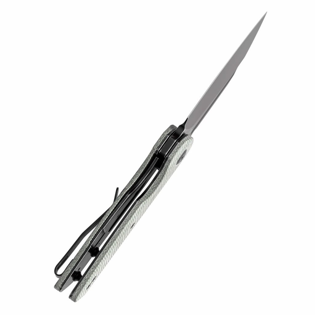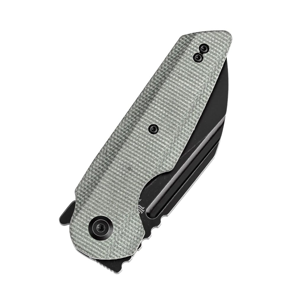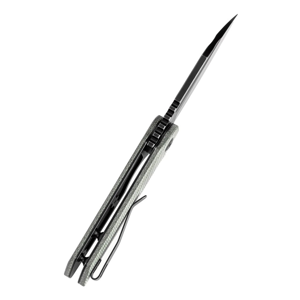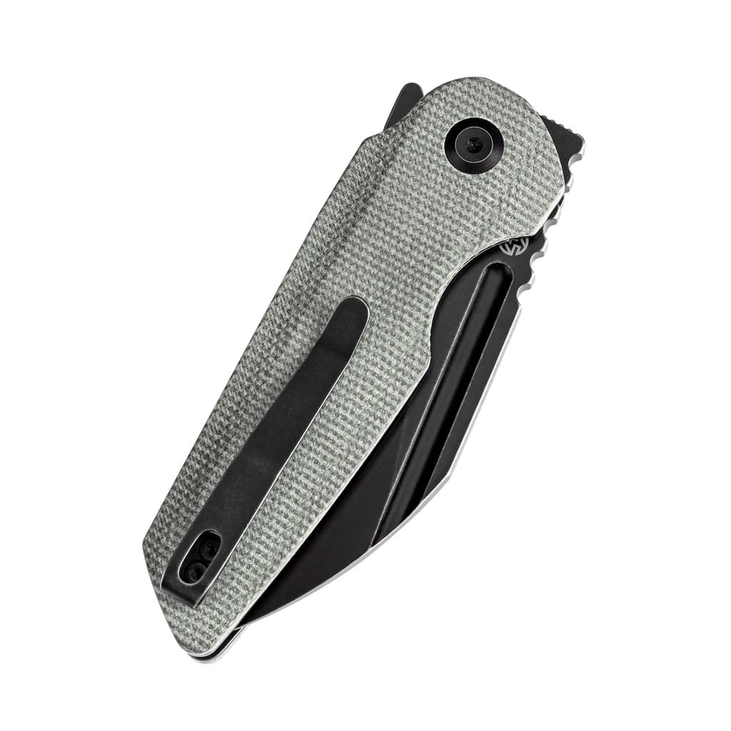 Rafe L to nóż składany o agresywnej budowie, zaprojektowany dla firmy Kansept przez Adama z 4T5 Design, z prowincji Alberta w Kanadzie. Model cechuje się wysoką wydajnością i doskonale sprawdzi się w codziennym użytkowaniu. Głownia o funkcjonalnym profilu Sheepsfoot została wykonana ze szwedzkiej stali nierdzewnej Sandvik 14C28N, odpornej na korozję i odpowiednio twardej. Wykończenie jej na czarno metodą Stonewash pozostawia nieregularną powłokę dobrze maskującą rysy i zadrapania powstające podczas eksploatacji. Klingę osadzono na ceramicznych łożyskach kulkowych, która przy wykorzystaniu obustronnego zagłębienia, flippera lub front flippera wysuwa się płynnie i gładko. Prosta obsługa jedną ręką zadowoli zarówno osoby prawo, jak i leworęczne. Bezpieczeństwo pracy zapewnia klasyczny mechanizm Liner Lock blokujący narzędzie po rozłożeniu. Karbowany grzbiet ostrza stanowi stabilne wsparcie dla kciuka i ułatwia realizację zadań wymagających większej precyzji. Rękojeść z zielonej Micarty o frezowanych krawędziach posiada również wyprofilowanie pod palec, dzięki któremu chwyt jest pewny i komfortowy. Konstrukcję uzupełnia dwupozycyjny klips mocujący, pozwalający na wygodne przenoszenie foldera w kieszeni spodni lub przy wyposażeniu. W zestawie znajduje się również ściereczka z mikrofibry do czyszczenia noża. Kansept Knives to uosobienie najnowocześniejszych technologii i praktycznego wzornictwa. Jej motto brzmi “Nie tylko produkujemy noże, czynimy je lepszymi”, co doskonale oddaje charakter tej marki. Firma wyróżnia się z tłumu innowacyjnymi koncepcjami angażując do współpracy najlepszych projektantów z branży. Każdy element jest skrupulatnie obrabiany, za pomocą zaawansowanych maszyn lub ręcznie, tworząc znakomite połączenie kunsztu i estetyki.
