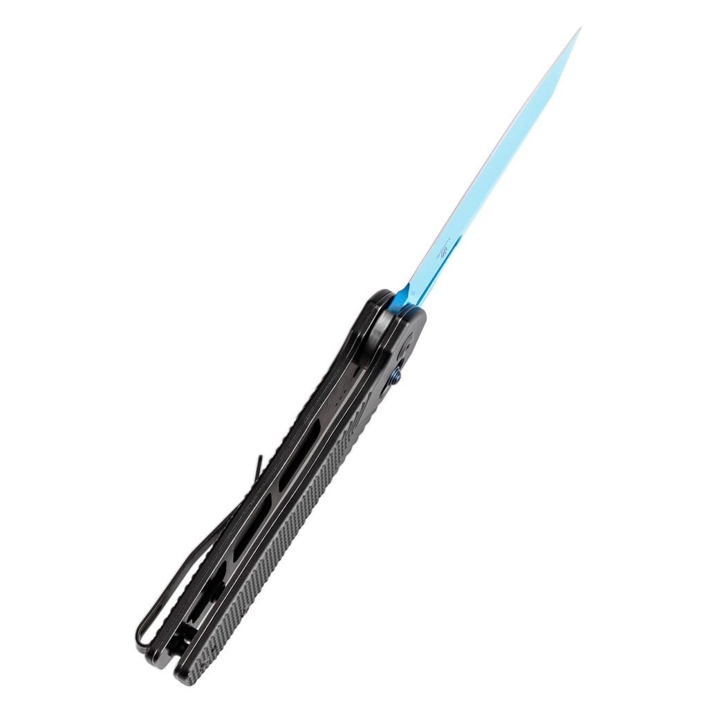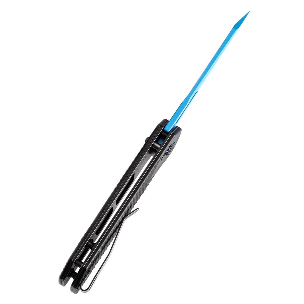 Shard, należący do przystępnej cenowo serii Tenable producenta Kansept, stanowi świetną propozycję do codziennego użytku. Model posiada ostrze o profilu Reverse Tanto wykonane ze szwedzkiej stali nierdzewnej Sandvik 14C28N o bardzo dobrej odporności na korozję i odpowiednio twardej. W celu zabezpieczenia głowni przed negatywnym działaniem czynników zewnętrznych pokryto ją niebieską powłoką ochronną, nadającą unikatowego charakteru całej konstrukcji. Klingę osadzono na ceramicznych łożyskach kulkowych, która przy wykorzystaniu otworu wysuwa się płynnie i gładko. Prosta obsługa jedną ręką zadowoli zarówno osoby prawo jak i leworęczne. Blokada Crossbar Lock, w postaci obustronnego bolca na rękojeści, zapewnia wysoki poziom bezpieczeństwa. Jest to system składający się z dwóch sprężyn w kształcie litery omega, mający po cztery otwory na obu linersach. Co daje aż 16 opcji indywidualnego dopasowania mocy blokady, w zależności od preferencji użytkownika. Okładziny chwytu zrobiono z aluminium o antypoślizgowej fakturze poprawiającej przyczepność do dłoni. Konstrukcję uzupełnia dwupozycyjny klips mocujący, pozwalający na wygodne przenoszenie noża w kieszeni spodni. W zestawie znajduje się również ściereczka z mikrofibry do czyszczenia narzędzia. Kansept Knives to uosobienie najnowocześniejszych technologii i praktycznego wzornictwa. Jej motto brzmi “Nie tylko produkujemy noże, czynimy je lepszymi”, co doskonale oddaje charakter tej marki. Firma wyróżnia się z tłumu innowacyjnymi koncepcjami angażując do współpracy najlepszych projektantów z branży. Każdy element jest skrupulatnie obrabiany, za pomocą zaawansowanych maszyn lub ręcznie, tworząc znakomite połączenie kunsztu i estetyki.