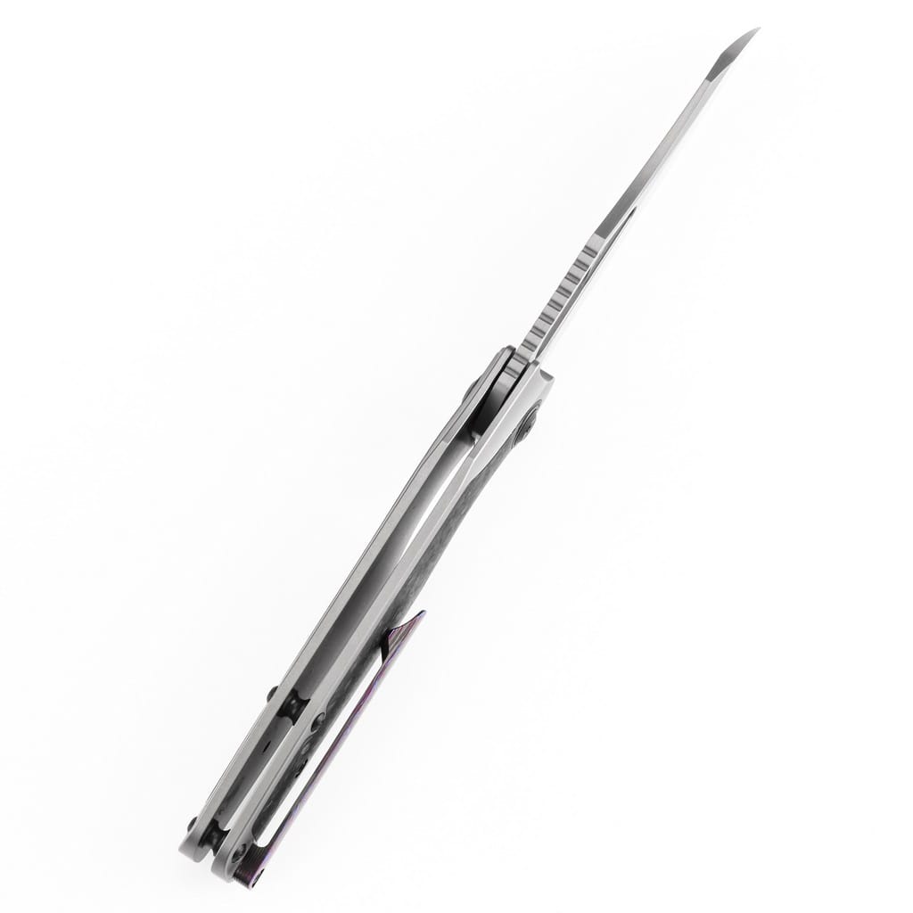 Kanspet Tuckamore został zaprojektowany przez Jonathan Styles, mężczyznę aktywnie spedzającego dużo czasu na świeżym powietrzu, dla którego inspiracją jest zawsze natura. Ten wysokiej jakości folder będzie świetnym towarzyszem codziennej przygody lub ozdobą gablety kolekcjonerskiej. Ostrze o profilu Sheepsfoot wykonano ze stali damasceńskiej o interesującym wzorze, bardzo dobrze ukrywającym wszelkie niedoskonałości powstające podczas eksploatacji. Klingę osadzono na ceramicznych łożyskach kulkowych, która przy wykorzystaniu otworu na głowni wysuwa się płynnie i gładko. Prosta obsługa jedną ręką zadowoli zarówno osoby prawo jak i leworęczne. Bezpieczeństwo pracy zapewnia solidny i niezawodny mechanizm Frame Lock, zaś karbowany grzbiet ostrza stanowi stabilne podparcie dla kciuka, co jest niezwykle przydatne przy precyzyjnych zadaniach. Do tytanowej ramy przymocowano okładziny z eleganckiego włókna węglowego. Głębokie wyprofilowanie pod palec na rękojeści gwarantuje pewny chwyt w każdych warunkach. Konstrukcję uzupełnia tytanowy klips mocujący pozwalający na wygodne przenoszenie narzędzia w kieszeni spodni. W zestawie znajduje się ściereczka z mikrofibry oraz wysokiej jakości pokrowiec do bezpiecznego transportowania produktu, a całość zapakowano w czarne pudełko prezentowe. Kansept Knives to uosobienie najnowocześniejszych technologii i praktycznego wzornictwa. Jej motto brzmi “Nie tylko produkujemy noże, czynimy je lepszymi”, co doskonale oddaje charakter tej marki. Firma wyróżnia się z tłumu innowacyjnymi koncepcjami angażując do współpracy najlepszych projektantów z branży. Każdy element obrabiany jest skrupulatnie ręcznie lub za pomocą zaawansowanych maszyn, co tworzy znakomite połączenie kunsztu i estetyki.