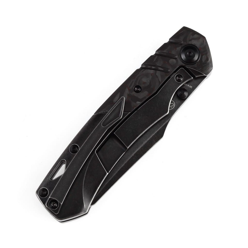 Weim firmy Kansept to kolekcjonerski nóż składany gwarantują niezawodność i wydajność na najwyższym poziomie, zaprojektowany przez Jonathan Styles. Model posiada ostrze o profilu Sheepsfoot wykonane z amerykańskiej stali nierdzewnej klasy premium CPM S35VN. Odpowiednio dobrane proporcje wanadu i niobu wpływają na jej twardość, wytrzymałość i odporność na korozję. Wykończenie jej na czarno metodą Stonewash pozostawia nieregularną powłokę dobrze maskującą rysy i zadrapania powstające podczas eksploatacji. Klingę osadzono na ceramicznych łożyskach kulkowych, która przy wykorzystaniu obustronnego kołka wysuwa się płynnie i gładko. Prosta obsługa jedną ręką zadowoli zarówno osoby prawo jak i leworęczne. Bezpieczeństwo podczas pracy, gdy folder jest w użyciu, zapewnia solidny i niezawodny mechanizm Frame Lock. Rękojeść stanowi tytanowa rama i przymocowane do niej okładziny z eleganckiego włókna węglowego. Frezy na grzbiecie narzędzia i wyprofilowanie pod palec poprawiają przyczepność do dłoni. Na zakończeniu umieszczono otwór umożliwiający przełożenie paracordu lub breloka ozdobnego. Konstrukcję uzupełnia klips mocujący, pozwalający na wygodne przenoszenie noża w kieszeni spodni. W zestawie znajduje się ściereczka z mikrofibry oraz wysokiej jakości pokrowiec do bezpiecznego transportowania narzędzia, a całość zapakowano w czarne pudełko prezentowe. Kansept Knives to uosobienie najnowocześniejszych technologii i praktycznego wzornictwa. Jej motto brzmi “Nie tylko produkujemy noże, czynimy je lepszymi”, co doskonale oddaje charakter tej marki. Firma wyróżnia się z tłumu innowacyjnymi koncepcjami angażując do współpracy najlepszych projektantów z branży. Każdy element obrabiany jest skrupulatnie ręcznie lub za pomocą zaawansowanych maszyn, co tworzy znakomite połączenie kunsztu i estetyki.