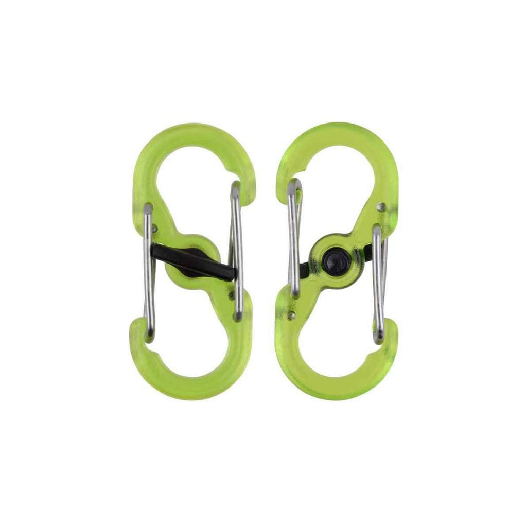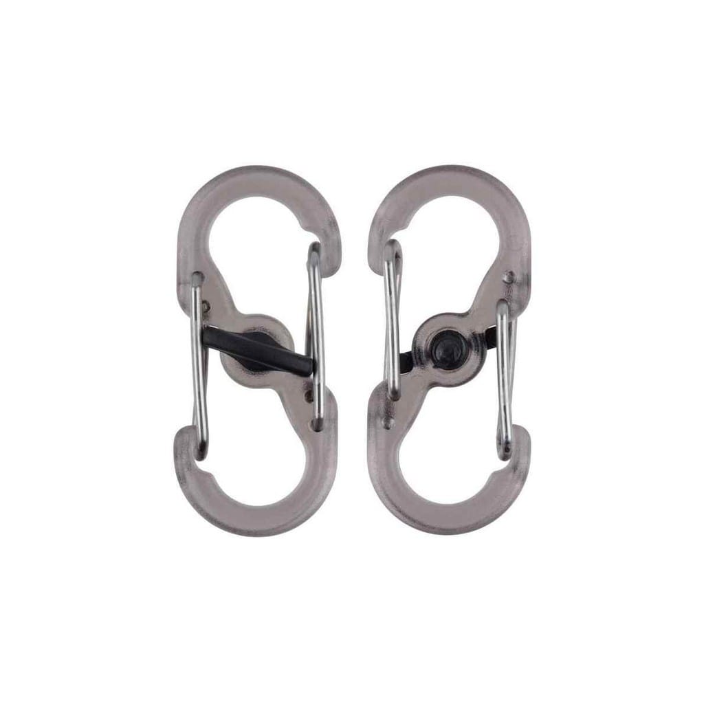 - Sześć poliwęglanowych małych karabińczyków z blokadą MicroLock