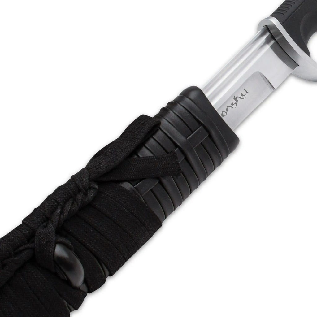 Honshu Boshin Sub-Hilt firmy United Cutlery to nowoczesna katana łącząca uświęconą tradycję z innowacyjnym stylem XXI wieku. Szykowne i eleganckie ostrze o satynowym wykończeniu zostało wykonane z wysokowęglowej stali 1060. Imponująca głownia Tanto jest solidna jak skała i wyjątkowo ostra, z łatwością przecina zrolowane japońskie maty tatami, gruby bambus czy inne trwałe materiały bez jakiegokolwiek uszczerbku na klindze. Wakizashi jest odpowiednio wyważona i pomimo niesamowitego piękna jakie prezentuje została zaprojektowana do taktycznego użytku. Rękojeść z tworzywa TPR o antypoślizgowej fakturze minimalizuje zmęczenie dłoni oraz gwarantuje pewny chwyt i zapewnia komfort użytkowania. Sporych rozmiarów jelec wraz z dodatkową stalową podporą zabezpieczają rękę przed jej przypadkowym zsunięciem się na krawędź tnącą. Skośnie zakończona kashira posiada otwór na smycz, co pozwala stworzyć oplot na nadgarstek. Całość dopełnia drewniana saya (pochwa) ozdobiona sztucznym skórzanym oplotem. Honshu Boshin to wyjątkowa katana zapierająca dech w piersiach, która swoimi atutami urzeka nie tylko miłośników japońskich mieczy.