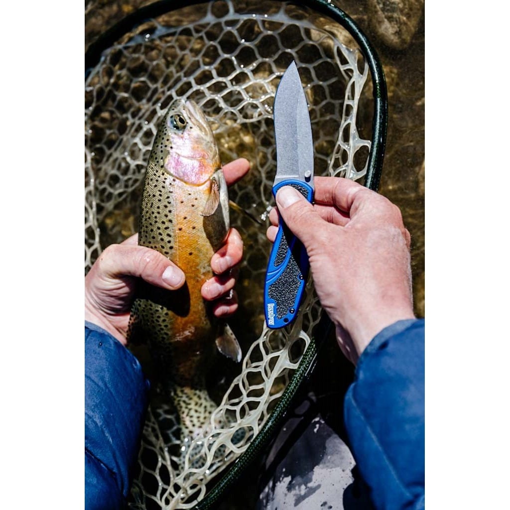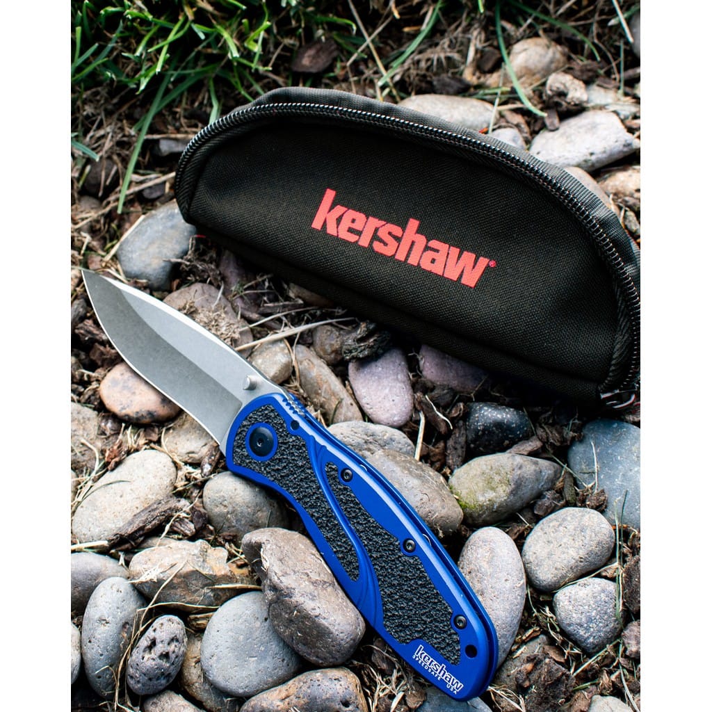 Blur to efekt kolaboracji firmy Kershaw z uznanym knifemakerem Kenem Onionem. Folder, wyprodukowany w USA, łączy w sobie nie tylko wysoką jakość wykonania, ale także nowoczesny wygląd i funkcjonalność. Doskonale sprawdzi się w codziennym użytkowaniu do wielu zadań i sytuacji. Duże ostrze o profilu Drop Point z wyraźnym kształtem fali zapewnia świetne możliwości krojenia i przekłuwania. Wykonano je ze szwedzkiej stali nierdzewnej Sandvik 14C28N o bardzo dobrej odporności na korozję i odpowiednio twardej. Wykończenie głowni metodą Stonewash pozostawia nieregularną powłokę dobrze maskującą rysy powstające podczas eksploatacji. Do szybkiego rozłożenia noża jedną ręką służy obustronny kołek na klindze. Wspomaganie wysuwania ostrza gwarantuje płynne działanie oraz sprawia, że narzędzie jest gotowe w ułamku sekundy. Blokada Liner Lock dba o bezpieczeństwo użytkownika chroniąc przed przypadkowym złożeniem się noża, gdy jest w użyciu. Niewielkie karbowanie na grzbiecie głowni daje stabilne oparcie dla kciuka. Niebieska, aluminiowa rękojeść została wzbogacona o gumowe wkładki o szorstkiej powierzchni, co gwarantuje dobrą przyczepność do dłoni i pewny chwyt w każdych warunkach. Na zakończeniu umieszczono otwór umożliwiający przełożenie paracordu lub breloka ozdobnego. Konstrukcję uzupełnia dwupozycyjny klips mocujący do wygodnego przenoszenia foldera w kieszeni spodni.
