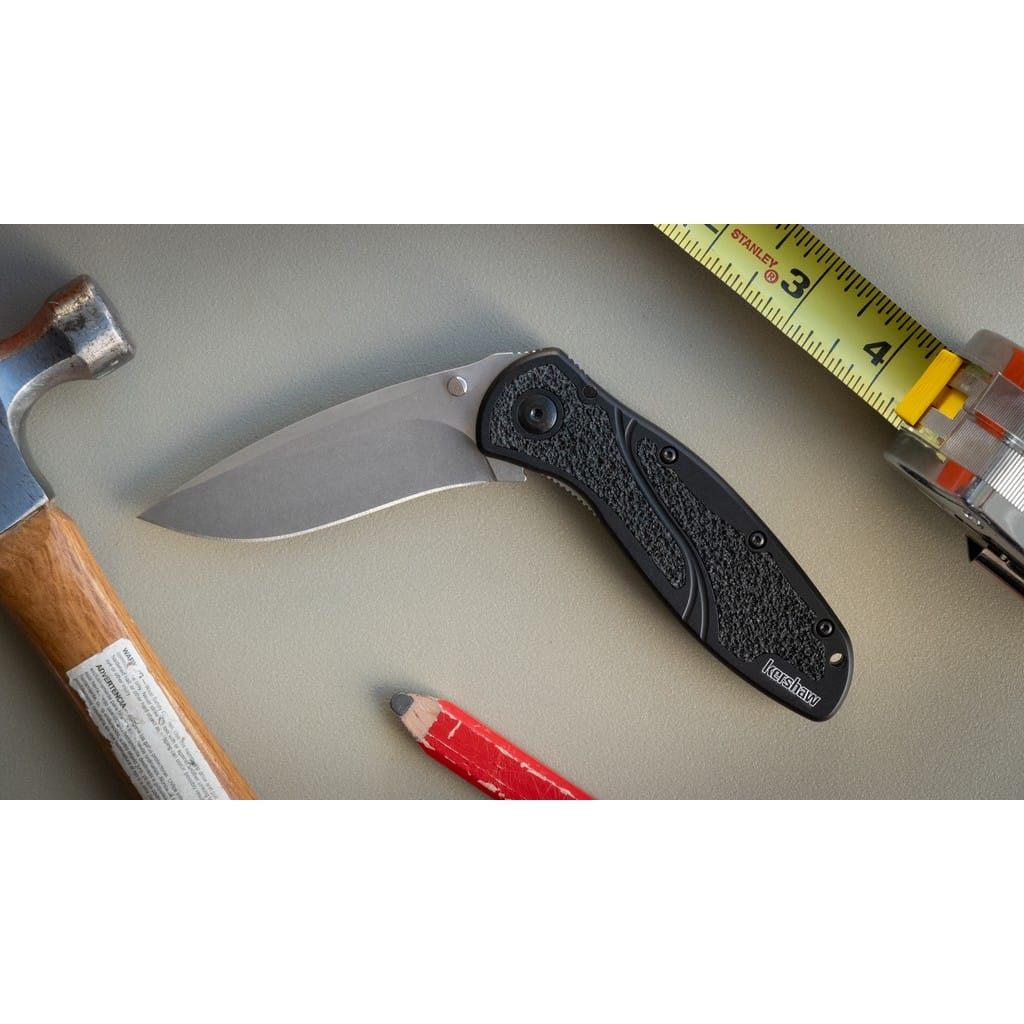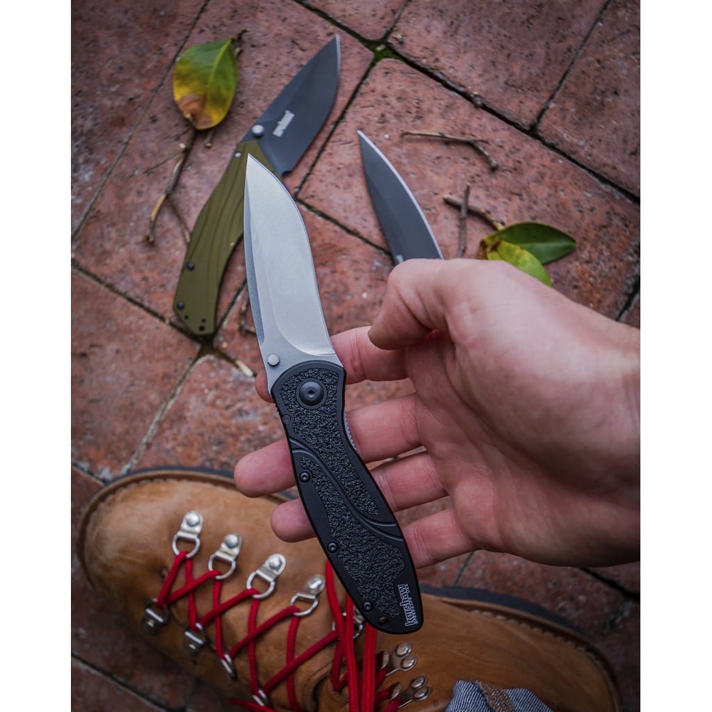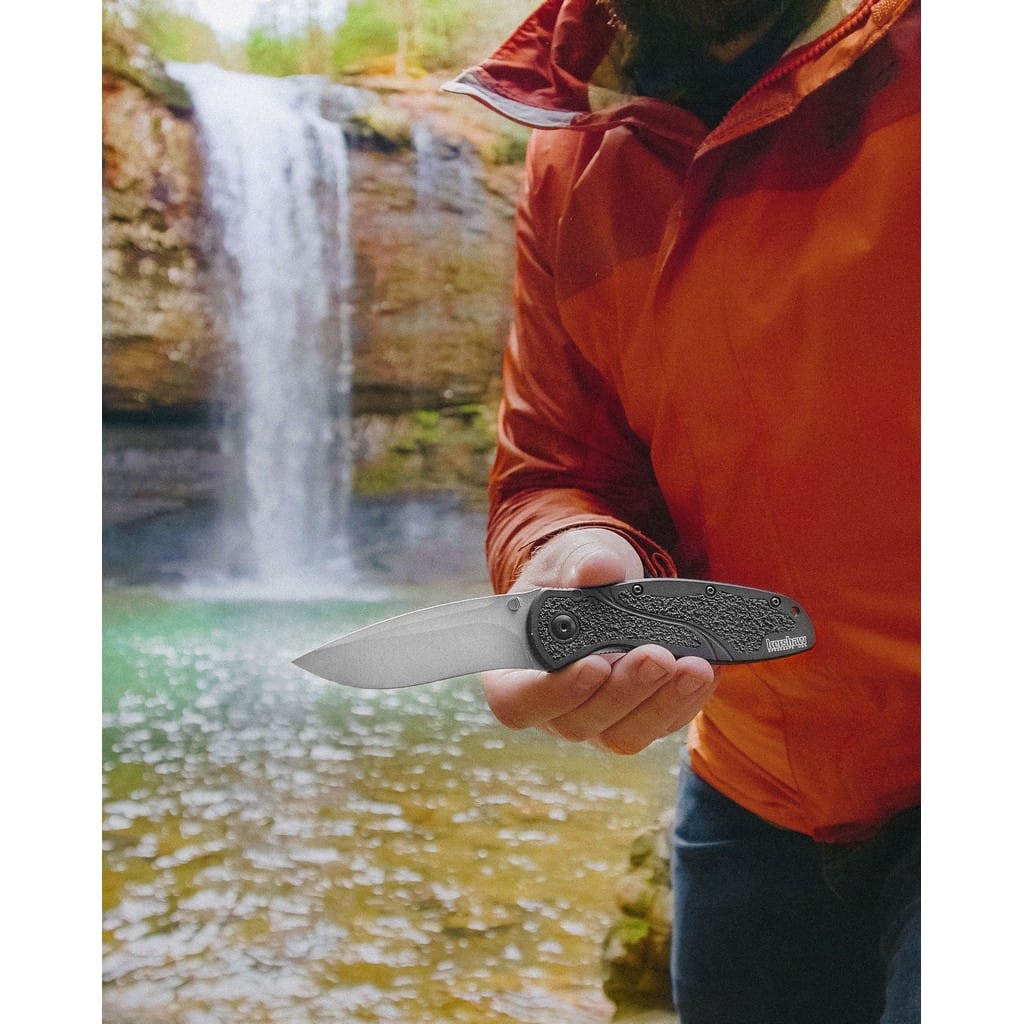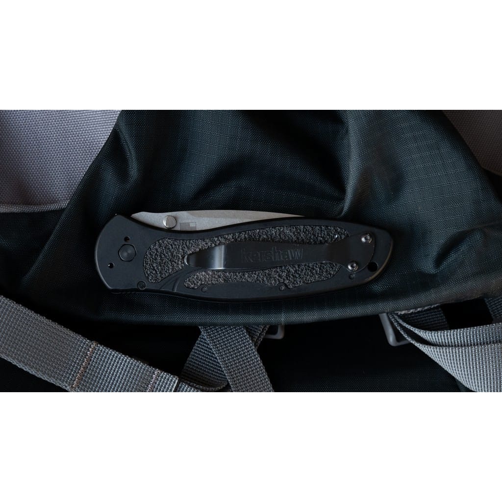 Blur to efekt kolaboracji firmy Kershaw z cenionym knifemakerem Kenem Onionem. Folder został wyprodukowany w USA oraz łączy wysoką jakość wykonania z nowoczesnym wyglądem i funkcjonalnością. Duże ostrze o profilu Drop Point, z wyraźnym kształtem fali, oferuje świetne możliwości krojenia i przekłuwania. Wykonano je z amerykańskiej stali nierdzewnej klasy premium CPM S30V, która posiada bardzo dobre parametry użytkowe. Jest twarda, co zawdzięcza odpowiedniej proporcji wanadu i idealnie ostra, dzięki czemu nadaje się do precyzyjnego cięcia. Wykończenie głowni metodą Stonewash pozostawia nieregularną powłokę maskującą rysy powstające podczas eksploatacji. Do szybkiego rozłożenia noża jedną ręką służy obustronny kołek na klindze. Wspomaganie wysuwania ostrza gwarantuje jego płynne działanie oraz sprawia, że narzędzie jest gotowe do pracy w ułamku sekundy. Blokada Liner Lock dba o bezpieczeństwo chroniąc przed przypadkowym złożeniem się produktu, gdy jest w użyciu. Niewielkie karbowanie na grzbiecie głowni daje stabilne wsparcie dla kciuka pomagając przy precyzyjnych zadaniach. Czarną rękojeść z aluminium wzbogacono o gumowe wkładki z szorstką powierzchnią, co zapewnia dobrą przyczepność do dłoni w każdych warunkach. Na zakończeniu umieszczono otwór umożliwiający przełożenie paracordu lub breloka ozdobnego. Konstrukcję uzupełnia dwupozycyjny klips mocujący do wygodnego przenoszenia foldera w kieszeni spodni lub przy wyposażeniu. Model Blur doskonale sprawdzi się w codziennym użytkowaniu do wielu zadań w domu, jak i w terenie.