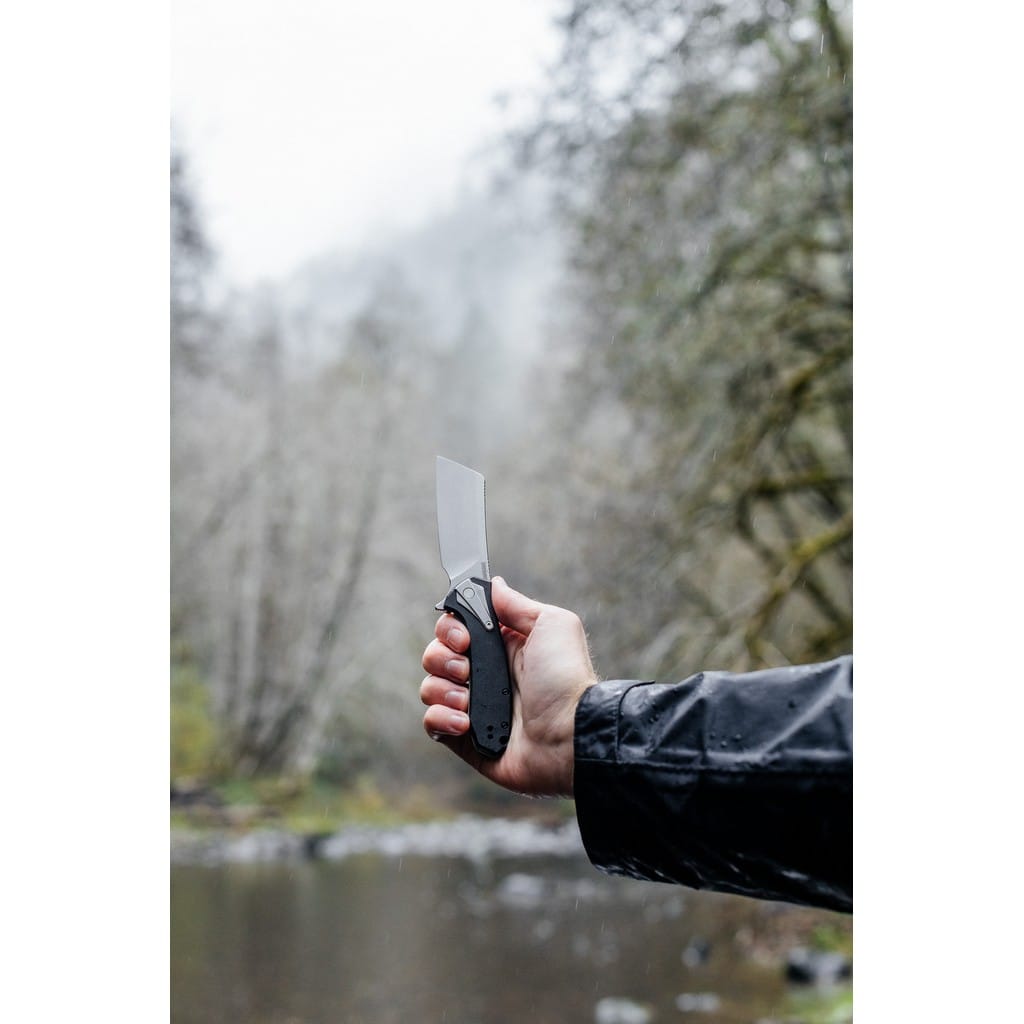 Model Bracket amerykańskiej firmy Kershaw to wersja XL oferowanego przez producenta modelu Static. Dodatkowo nóż oprócz zmiany rozmiaru posiada kilka innych szczegółów wprowadzających świeży design do projektu. Głownia o kształcie tasaka doskonale przedziera się przez paczki, żywność oraz odzież dzięki fałszywej przedniej krawędzi. Sprawdzi się nie tylko w kuchni, ale również do codziennych zadań poza nią. Klinga została zrobiona ze stali nierdzewnej 8Cr13MoV i wykończona metodą Stonewash pozostawiającą nieregularną powłokę dobrze maskującą rysy powstające podczas eksploatacji. Wspomaganie wysuwania ostrza SpeedSafe płynnie i szybko wysuwa je przy wykorzystaniu jednej ręki i dużego flippera pełniącego jednocześnie funkcję jelca zabezpieczającego dłoń przed jej zsunięciem się na krawędź tnącą. Solidna i niezawodna blokada Frame Lock czuwa nad bezpieczeństwem pracy gdy folder jest w użyciu, a karbowany grzbiet głowni stanowi stabilne podparcie dla kciuka ułatwiając wykonywanie zadań wymagających precyzji. Rękojeść to połączenie na jednej ze stron narzędzia nylonu wzmocnionego włóknem szklanym o bardzo dobrej przyczepności, ze stalą nierdzewną na drugiej. Całość uzupełnia otwór na linkę oraz dwupozycyjny klips mocujący do wygodnego transportowania noża w kieszeni lub przy wyposażeniu.