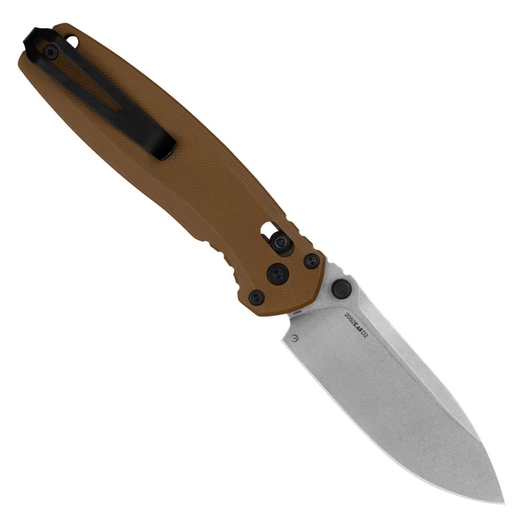 Broadside to uniwersalny nóż składany zaprojektowany przez amerykańską firmę Kershaw do codziennego użytku. Ostrze o profilu Spear Point zostało wykonane z wysokiej jakości stali narzędziowej D2 o doskonałej wydajności cięcia, twardej i odpornej na zużycie. Wykończenie jej metodą Stonewash pozostawia nieregularną powłokę dobrze maskującą rysy i zadrapania powstające podczas eksploatacji. Szybkie i płynne rozłożenie narzędzia jedną ręką, przy wykorzystaniu obustronnego kołka na klindze, umożliwia łożyskowy systemem KVT (Kershaw Velocity Technology). Bezpieczeństwo pracy zapewnia blokada DuraLock, a karbowany grzbiet głowni daje stabilne wsparcie dla kciuka, pomagając przy precyzyjnych zadaniach. Rękojeść w brązowym kolorze zrobiono z odpornego na warunki atmosferyczne materiału G10. Okładziny cechują się frezowanymi krawędziami i wcięciem pod palec, co zwiększa przyczepność do dłoni i gwarantuje pewny chwyt w każdym środowisku. Na zakończeniu znajduje się otwór na linkę umożliwiający przełożenie paracordu lub breloka ozdobnego. Konstrukcję uzupełnia dwupozycyjny klips mocujący do głębokiego przenoszenia noża w kieszeni spodni.