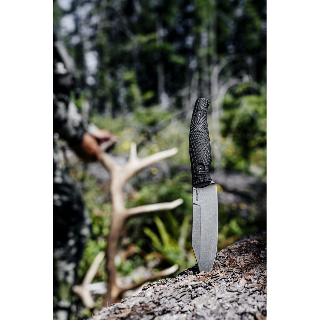 Camp 5 to duży i solidny nóż survivalowy zaprojektowany do radzenia sobie w terenie, bez różnicy czy budujemy schronienie, przygotowujemy posiłek na biwaku czy karczujemy krzaki w ogrodzie. Świetnie nadaje się różnego rodzaju aktywności na świeżym powietrzu, a dołączona do zestawu pochwa z Zytelu umożliwia wygodne i bezpieczne przenoszenie narzędzia na pasku lub przy wyposażeniu. Potężne ostrze wykonano z wysokiej jakości stali nierdzewnej D2, która dzięki dużej zawartości chromu jest znacznie bardziej odporna na korozję w porównaniu do innych stali narzędziowych. Dodatkowo jest wytrzymała i odporna na ścieranie oraz długo trzyma właściwą ostrość krawędzi tnącej. Wykończenie jej metodą Stonewash sprawia, że dzięki nieregularnej powłoce doskonale maskuje rysy powstające podczas eksploatacji. Karbowany grzbiet klingi stanowi stabilne podparcie dla kciuka i ułatwia realizowanie precyzyjnych zadań. Okładziny rękojeści z nylonu wzmocnionego włóknem szklanym przytwierdzono śrubami do stalowej konstrukcji. Ich antypoślizgowa tekstura obrabiana maszynowo gwarantuje dobrą przyczepność do dłoni, co wpływa na wysoki komfort użytkowania noża.