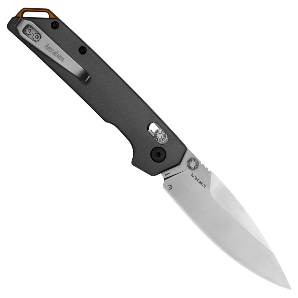 Kershaw Iridium to elegancki folder o klasycznym wyglądzie i smukłym profilu, zaprojektowany do codziennego noszenia. Ostrze o charakterystyce Spear Point zostało wykonane z wysokiej jakości stali narzędziowej D2 o doskonałej wydajności cięcia, twardej i odpornej na zużycie. Wykończenie wklęsłych elementów klingi metodą Satin pozostawia drobne ryski lekko matujące powierzchnię, co daje efekt niedokładnego wypolerowania. Na wypukłych częściach zastosowano metodę Stonewash. Szybkie i płynne rozłożenie noża jedną ręką przy wykorzystaniu obustronnego kołka na głowni umożliwia łożyskowy systemem KVT (Kershaw Velocity Technology). Bezpieczeństwo użytkowania zapewnia blokada DuraLock, a karbowany grzbiet klingi stanowi stabilne wsparcie dla kciuka. Gładka, aluminiowa rękojeść anodowana na szaro posiada wyprofilowanie pod palec, co gwarantuje pewny chwyt. Na zakończeniu znajduje się sporych rozmiarów miejsce na linkę umożliwiające przełożenie paracordu lub breloka ozdobnego. Konstrukcję uzupełnia dwupozycyjny klips mocujący do głębokiego przenoszenia narzędzia w kieszeni spodni. Iridium to model o nowoczesnym designie, który sprawdzi się zarówno na formalnych spotkaniach, w pracy, jak i w terenie.