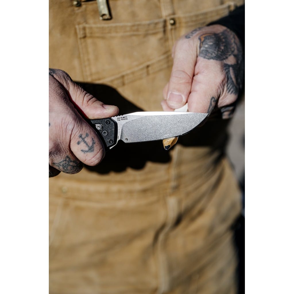 Layup to innowacyjny folder EDC zaprojektowany przez firmę Kershaw. Klinga o uniwersalnym profilu Drop Point została wykonana z wysokiej jakości stali narzędziowej D2 o doskonałej wydajności, twardej i odpornej na zużycie. Wykończenie jej metodą Stonewash pozostawia nieregularną powłokę dobrze maskującą rysy i zadrapania powstające podczas eksploatacji. Szybkie i płynne rozłożenie narzędzia jedną ręką przy wykorzystaniu flippera, pełniącego również funkcję jelca, umożliwia łożyskowy systemem KVT (Kershaw Velocity Technology). Dodatkowo wspomaganie wysuwania ostrza w postaci wewnętrznej sprężyny, sprawia że model jest gotowy do działania w ułamku sekundy. Bezpieczeństwo podczas pracy zapewnia blokada DuraLock, a karbowany grzbiet klingi daje stabilne wsparcie dla kciuka. Rękojeść z nylonu wzmocnionego włóknem szklanym posiada antypoślizgową teksturę, gwarantującą dobrą przyczepność do dłoni. Konstrukcję uzupełnia dwupozycyjny klips mocujący do głębokiego przenoszenia foldera w kieszeni spodni lub przy wyposażeniu. Layup to idealny przyjaciel do codziennej przygody, który nie zawiedzie w trudnej sytuacji.