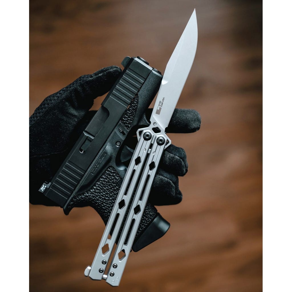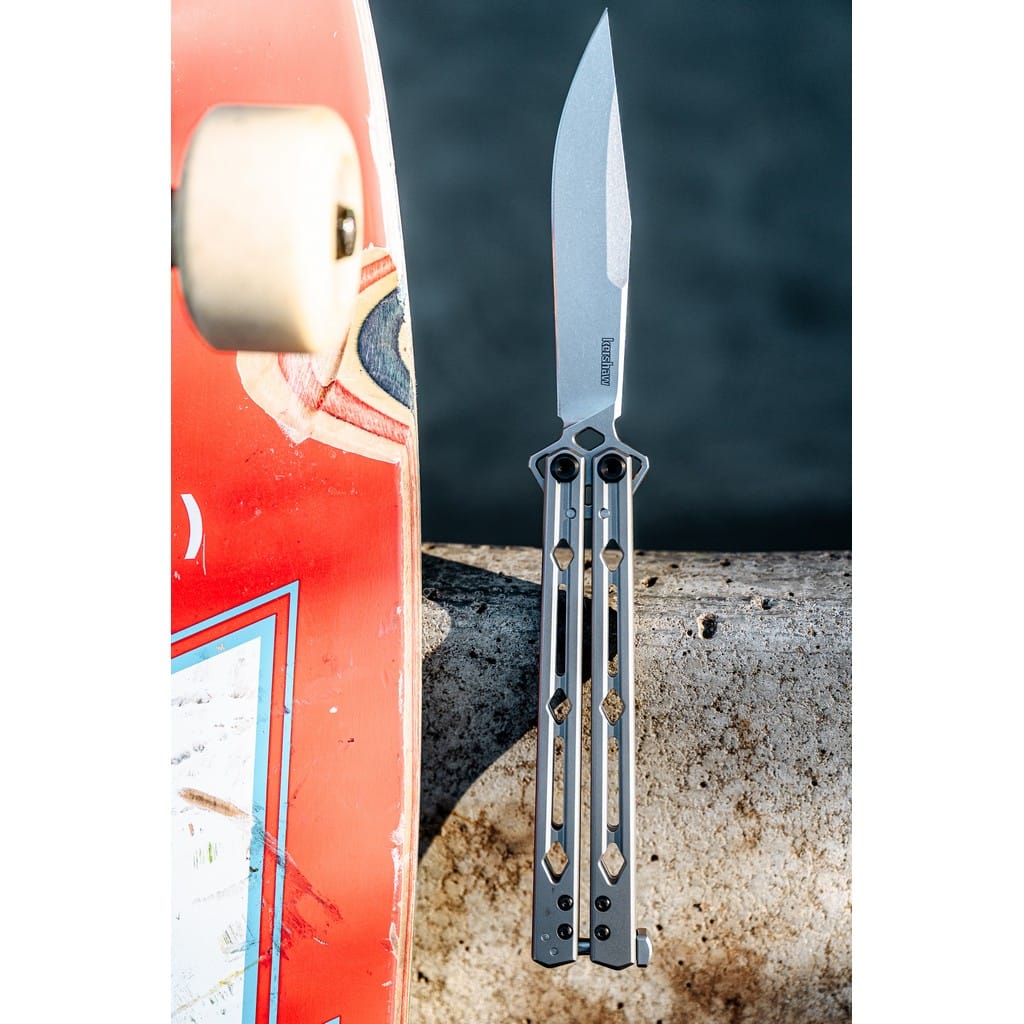 Lucha to wysokiej jakości nóż motylkowy wyprodukowany w USA przez firmę Kershaw. Ostrze o charakterystyce Clip Point wykonano z bardzo dobrej jakości stali Sandvik 14C28N o wysokiej odporności na korozję, którą uzyskano poprzez zmniejszenie ilości węgla, a zwiększenie ilości chromu. Głownię wykończono metodą Stonewash uzyskując nieregularną powłokę doskonale maskującą rysy powstające podczas użytkowania. Wycięcia na stalowej rękojeści zmniejszają wagę narzędzia i nadają interesującego wyglądu. Rozkładanie klingi wspomaga łożyskowy system KVT, zaś w pozycji zamkniętej ostrze blokowane jest solidnym trzpieniem, tak zwaną blokadą Latch. Całość prezentuje się elegancko, a odpowiednie wyważenie konstrukcji sprawia, że obracanie nożem jest proste i płynne.