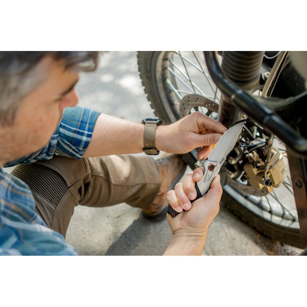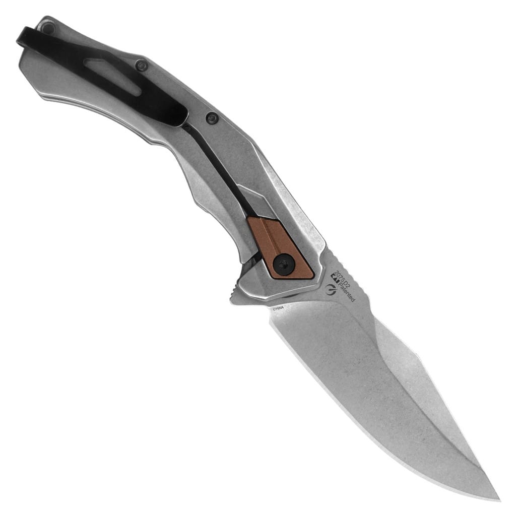 Payout to folder EDC charakteryzujący się bardzo dobrym wykonaniem i eleganckim wyglądem przyciągającym uwagę, który świetnie poradzi sobie z codziennymi zadaniami. Szerokie ostrze o profilu Clip Point wykonano z wysokiej jakości stali nierdzewnej D2 długo utrzymującej ostrość i bardzo wytrzymałej. Wykończenie jej metodą Stonewash pozostawia nieregularną powłokę dobrze maskującą rysy powstające podczas eksploatacji. Szybkie i płynne wysunięcie klingi jedną ręką umożliwia flipper, pełniący jednocześnie funkcję jelca, wspomagany systemem SpeedSafe. Bezpieczeństwo pracy zapewnia solidna blokada Frame Lock oraz karbowany grzbiet głowni stanowiący stabilne podparcie dla kciuka. Rękojeść to połączenie stali z lekkim tworzywem G10 o antypoślizgowej fakturze. Ergonomiczne wyprofilowanie okładzin pozwala na pewne ułożenie dłoni i wysoki komfort pracy. Anodyzowane na miedziany kolor akcenty ozdobne dodają pazura konstrukcji. Całość uzupełnia otwór na linkę oraz dwupozycyjny klips mocujący do głębokiego przenoszenia noża w kieszeni spodni.