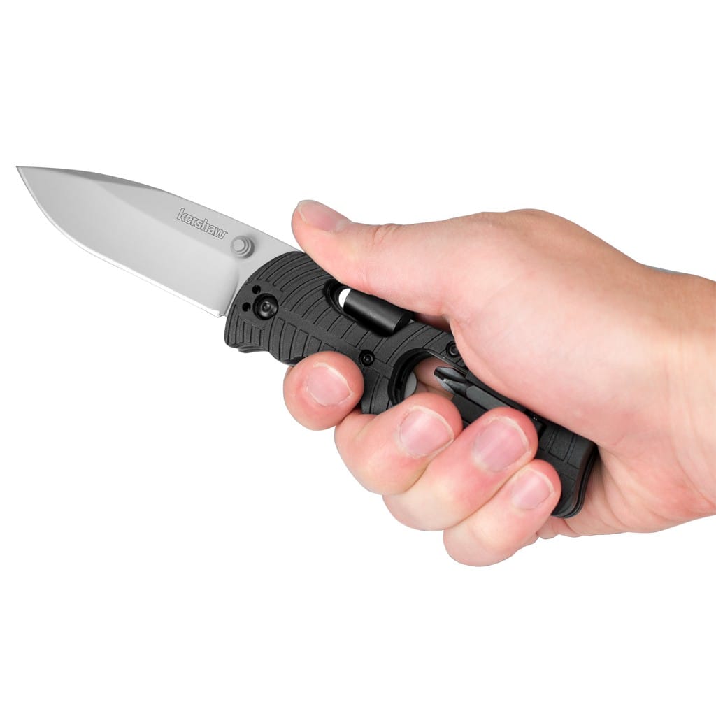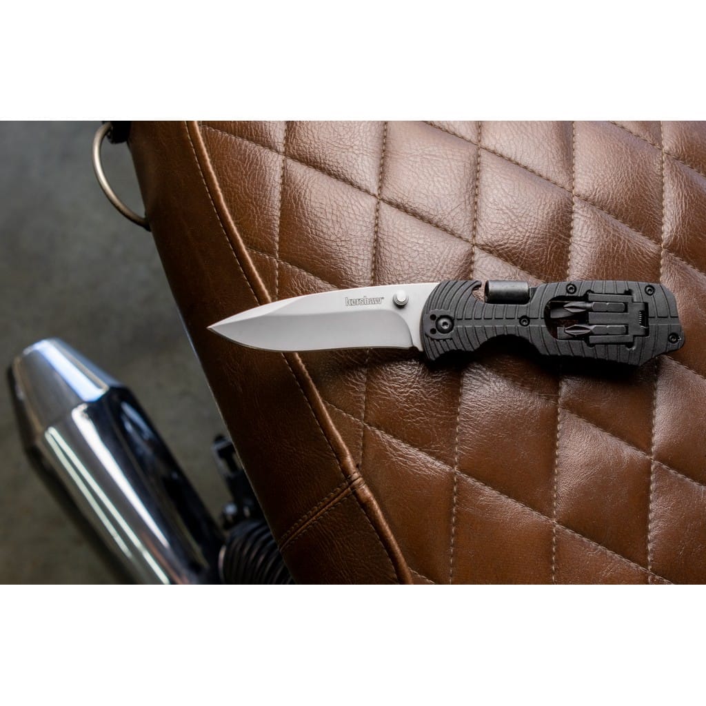 Większość narzędzi wielofunkcyjnych zawiera mnóstwo zbędnych funkcji, z których użytkownicy nie korzystają. Inaczej jest w przypadku noża Select Fire zaprojektowanego przez amerykańską firmę Kershaw. Model oprócz dużego ostrza posiada linijkę, otwieracz do butelek, adapter do bitów wraz z czterema różnymi końcówkami do napraw w awaryjnej sytuacji. Głownia o uniwersalnym profilu Drop Point została wykonana ze stali nierdzewnej 8Cr13MoV łatwej w ostrzeniu. Matowy efekt na klindze uzyskano poprzez piaskowanie, czyli dzięki tak zwanej metodzie Beadblast. Do szybkiego rozłożenia foldera służy obustronny kołek przyjazny osobom prawo i leworęcznym. Blokada Liner Lock dba o bezpieczeństwo podczas pracy chroniąc przed przypadkowym złożeniem się noża, gdy jest w użyciu. Rękojeść z nylonu wzmocnionego włóknem szklanym posiada antypoślizgowy wzór poprawiający przyczepność do dłoni. Konstrukcję uzupełnia klips mocujący do wygodnego przenoszenia narzędzia w kieszeni spodni lub przy wyposażeniu. Select Fire to model, który świetnie sprawdzi się do aktywności na świeżym powietrzu i będzie naszym niezawodnym towarzyszem codziennej przygody.