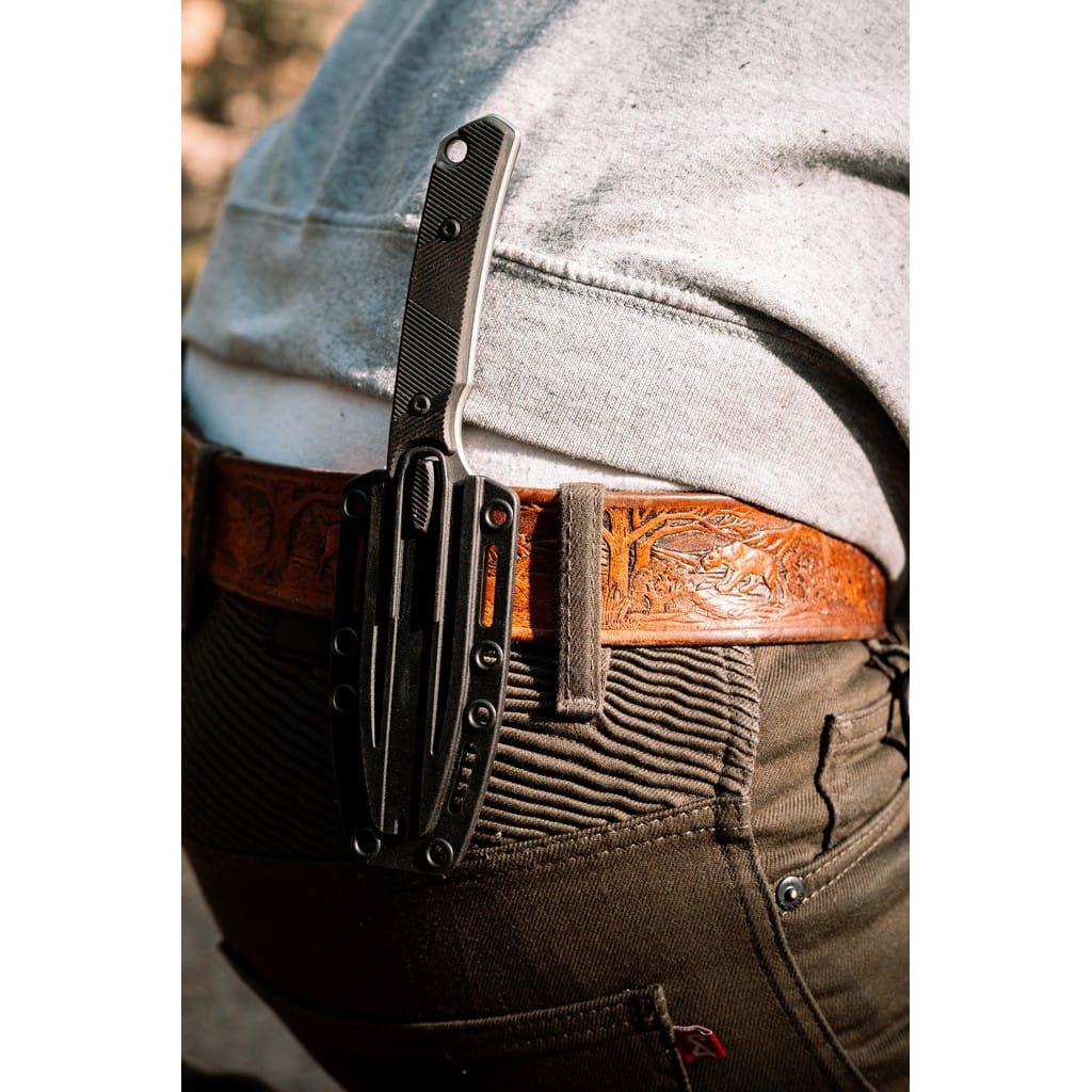 Stepe to lekki nóż EDC zaprojektowany przez amerykańską firmę Kershaw do zadań na świeżym powietrzu. Model charakteryzuje się konstrukcją full tang, co zwiększa jego wytrzymałość w terenie podczas wymagających prac. Głownia o uniwersalnym profilu Drop Point została wykonana z wysokiej jakości stali narzędziowej D2 o doskonałej wydajności cięcia, twardej i odpornej na zużycie. Wykończenie jej metodą Stonewash pozostawia nieregularną powłokę dobrze maskującą rysy i zadrapania powstające podczas eksploatacji. Karbowany grzbiet klingi stanowi stabilne wsparcie dla kciuka i ułatwia realizację szczegółowych działań. Rękojeść zrobioną z tworzywa wzbogacono gumową warstwą o właściwościach antypoślizgowych, co znacznie poprawia chwyt. Okładziny można również odkręcić uzyskując model szkieletowy i dostosować do indywidualnych potrzeb użytkownika. Na zakończeniu znajduje się otwór na linkę umożliwiający przełożenie paracordu i stworzenie oplotu na nadgarstek. Zestaw dopełnia pochwa z polipropylenu wyposażona w stalowy klips mocujący, dzięki któremu możemy bezpiecznie przenosić nóż na pasku spodni. Otwory na krawędziach kabury oferują dodatkowe opcje montażu całości do wyposażenia. Stepe to ciekawa propozycja dla miłośników survivalu i bushcraftu.