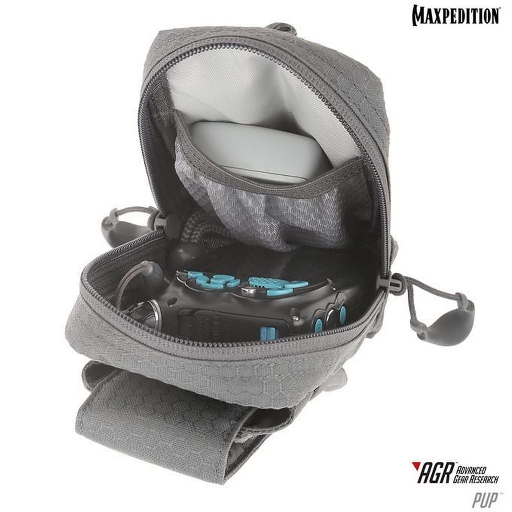 PUP firmy Maxpedition to nowoczesna i funkcjonalna kieszeń na telefon lub krótkofalówkę z miejscem na inną drobną elektronikę. Komora główna z wnętrzem w odcieniach szarości posiada przedział z siatki i jest zamykana na dwukierunkowy zamek błyskawiczny YKK. Doskonale sprawdzi się na aparat fotograficzny, powerbank, nawigację lub portfel i dokumenty. Przednia kieszeń została zaprojektowana na telefon lub smartfon, który dzięki wysuwanej klapie możemy z łatwością z niej wyjąć. Regulowane zamykanie na rzep pozwala dostosować wysokość pokrowca do naszego urządzenia. Boczne elastyczne gumki wzmacniają bezpieczeństwo i utrzymują sprzęt na miejscu. Uzupełnienie całości stanowią dwa polimerowe troki TacTie zgodne z systemem Molle/Pals. Pozwalają zamocować kieszeń na pasku spodni lub przy plecaku czy innym wyposażeniu.