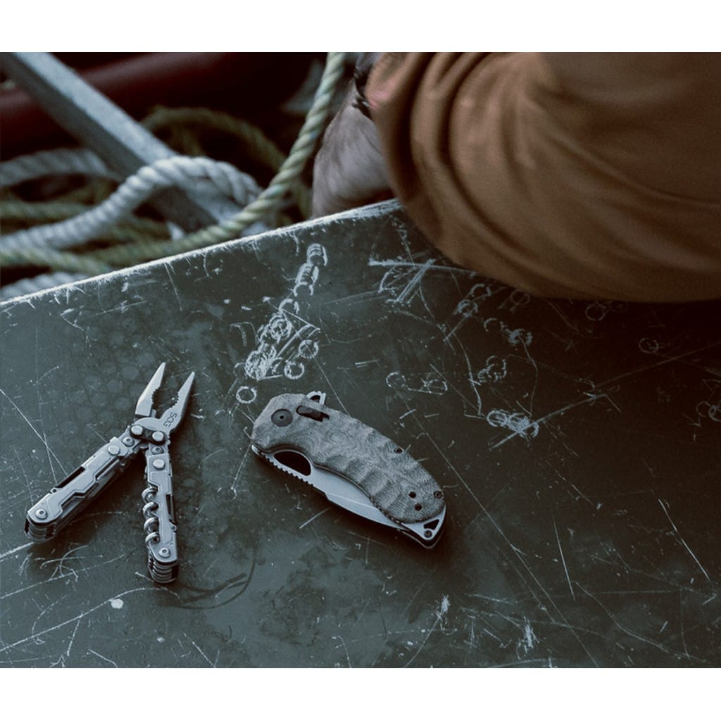 Kiku XR amerykańskiej firmy SOG to muskularny folder przenoszący na nowy poziom wydajności. Wygląd stanowi subtelną deklarację siły pomimo jego kompaktowych rozmiarów. Ostrze o zmodyfikowanym profilu Tanto zostało wykonane z amerykańskiej stali CTS XHP o ponadprzeciętnych właściwościach, odpornej na korozję i długo utrzymującej ostrą krawędź tnącą. Wykończenie głowni metodą Satin pozostawia drobne ryski lekko matujące powierzchnię. Model posiada innowacyjny system blokujący XR co oznacza, że użytkownik może wysunąć klingę jedną ręką na trzy różne sposoby. Przy pomocy flippera pełniącego jednocześnie funkcję jelca, otworu na głowni lub przesuwnym guzikiem na rękojeści. Dodatkowo bezpieczeństwu pracy sprzyja karbowany grzbiet noża stanowiący stabilne podparcie dla palców. Ergonomiczne okładziny rękojeści z Micarty zapewniają pewny i komfortowy chwyt nawet gdy dłoń jest w rękawicy. Uzupełnienie konstrukcji stanowi otwór na linkę oraz dwupozycyjny klips mocujący, dzięki któremu możemy wygodnie przenosić folder w kieszeni lub przy wyposażeniu.