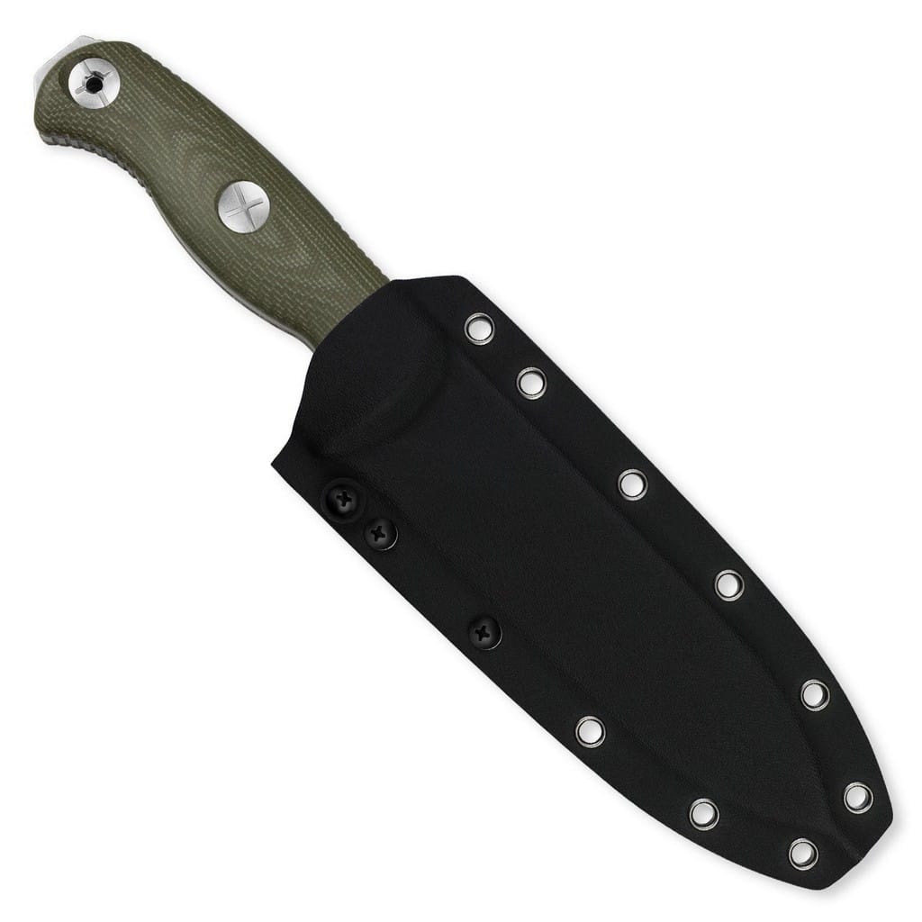 Azo to doświadczony knifemaker firmy Kizer, ceniący prostotę oraz przede wszystkim praktyczność swoich projektów. Model Drop Bear Fix 7 to wytrzymałe i masywne narzędzie survivalowe stworzone do pracy na świeżym powietrzu. Przemyślana budowa poradzi sobie z niejednym, trudnym wyzwaniem, jakie napotka w terenie. Potężne ostrze o profilu Drop Point zostało zrobione z niemieckiej stali nierdzewnej AEB-L charakteryzującej się łatwością ostrzenia i bardzo dobrą odpornością na korozję. Wykończenie jej metodą Stonewash pozostawia nieregularną powłokę dobrze maskującą rysy i zadrapania powstające podczas eksploatacji. Mocno karbowany grzbiet klingi stanowi stabilne wsparcie dla kciuka, co ułatwia wykonywanie precyzyjnych zadań. Do stalowej konstrukcji full tang przymocowano wyprofilowane okładziny z zielonej Micarty. Ergonomiczna rękojeść świetnie układa się w dłoni, gwarantując pewny chwyt oraz wysoki komfort użytkowania. Jelec chroni palce przed ich przypadkowym zsunięciem się na krawędź tnącą i skaleczeniem. Na zakończeniu umieszczono stalową głowicę służącą w awaryjnej sytuacji jako młotek. W zestawie znajduje się pochwa z kydexu wraz z ośmiopozycyjnym klipsem do paska, co pozwoli bezpiecznie transportować narzędzie blisko ciała, wedle własnym preferencji. Dodatkowo do kompletu producent dołączył również funkcjonalne mocowanie typu Tek-Lok. Przelotki na krawędziach kabury oferują kolejne opcje montażu noża do wyposażenia. Całość dopełnia linka paracord i ściereczka z mikrofibry, a wszystko zapakowano w czarne pudełko prezentowe. Firma Kizer współpracuje z projektantami z całego świata i skutecznie przekształca koncepcje w rzeczywistość. Wykorzystuje materiały pochodzące z USA i Japonii, aby dopracowanie każdego egzemplarza było na najwyższym poziomie. Posiada centrum badawczo-rozwojowe, a także linię przemysłową z nowoczesnymi i precyzyjnymi maszynami, które dostarczają funkcjonalność i niezawodność. Nie uznaje dróg na skróty, żadnych kompromisów, a każdy etap produkcji realizuje we właściwy i efektywny sposób.