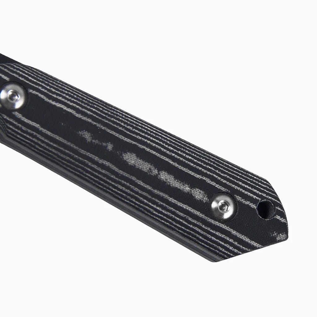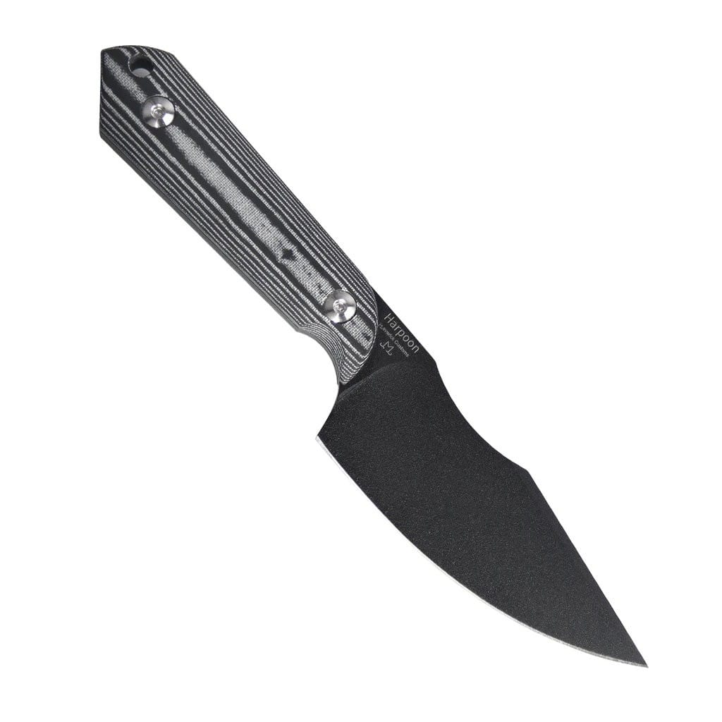 Kompaktowy nóż Harpoon ze stałym ostrzem to efekt współpracy firmy Kizer i Jamesa Buckley z Maverick Customs. Model doskonale sprawdzi się w codziennym użytkowaniu, gdyż z łatwością możemy przenosić go na pasku lub przy wyposażeniu dzięki dołączonej do zestawu kydexowej kaburze. Głownia ze stali narzędziowej D2 długo utrzymuje właściwą ostrość krawędzi tnącej oraz jest bardzo wytrzymała. W celach ochrony przed korozją została pokryta proszkowo czarną powłoką. Rękojeść wykonana z Micarty z delikatnym wgłębieniem na palec gwarantuje pewny i przyjemny chwyt. Na jej zakończeniu znajduje się otwór na linkę typu paracord co umożliwia stworzenie oplotu na nadgarstek. Rozwiązanie takie wpływa na bezpieczeństwo i wygodę operowania narzędziem. W komplecie występuje także ściereczka z mikrofibry. Firma Kizer tworzy noże światowej klasy wykorzystując materiały pochodzące z USA i Japonii. Każdy egzemplarz swój proces produkcji kończy w rękach doświadczonego rzemieślnika, aby uzyskać ostateczny zadowalający poziom dopasowania, wykończenia i ostrości.