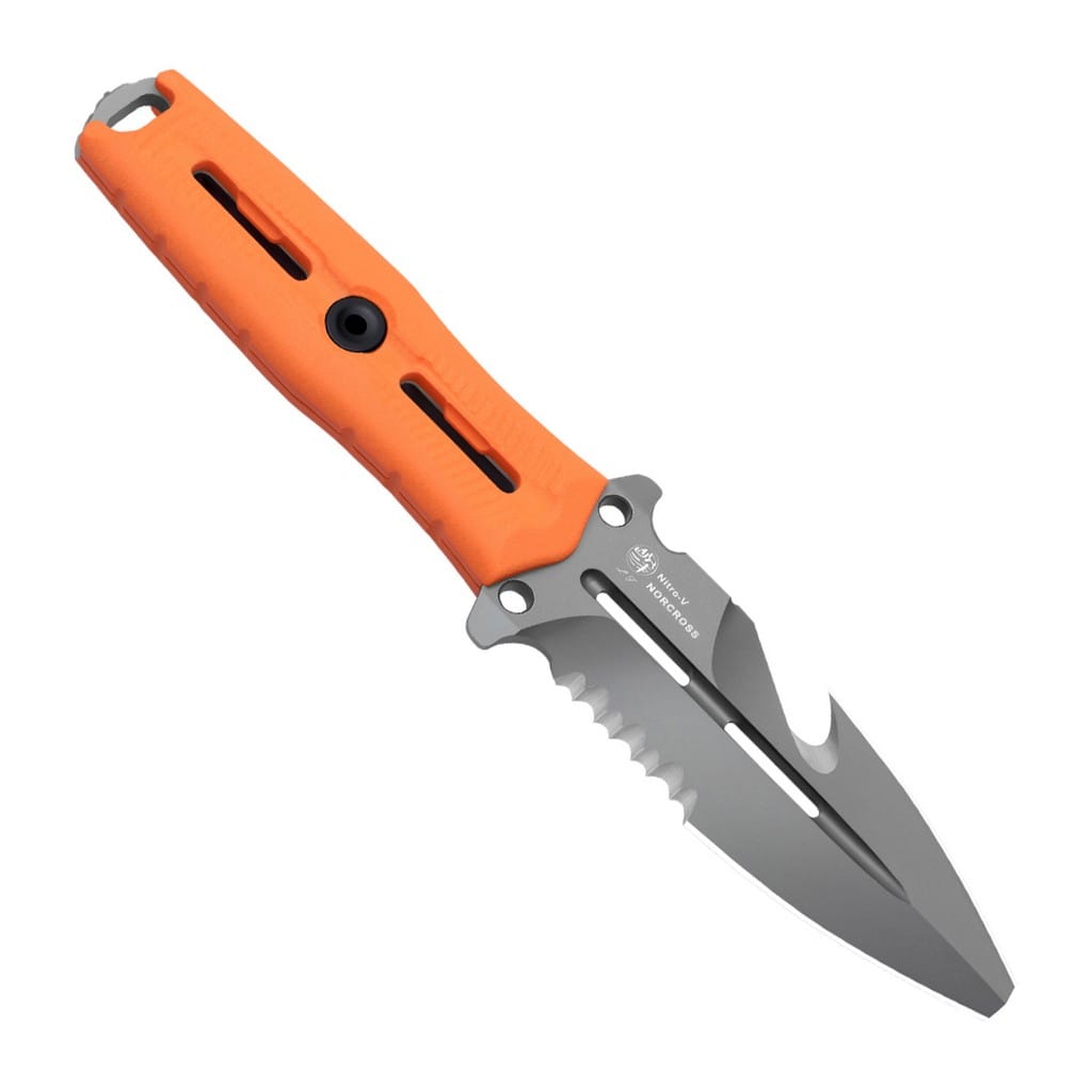Norcross firmy Kizer to nóż do zadań specjalnych pozbawiony ostrego czubka. Model stanowi doskonały wybór dla pracowników medycznych, strażaków, a także użytkowników poszukujących niezawodnego narzędzia ratunkowego. Obosieczna głownia o profilu Spear Point została wykonana z niemieckiej stali nierdzewnej Nitro-V wzbogaconej o azot i wanad. Pierwiastki te wpływają na twardość, wydajność i odporność na korozję. Wykończenie na szaro metodą Stonewash pozostawia nieregularną powłokę dobrze maskującą rysy i zadrapania powstające podczas eksploatacji. Klinga typu Combo pozwala na skuteczne cięcie zarówno miękkich przedmiotów, jak i twardych lin, taśm, sznurów oraz innych włóknistych materiałów. Dodatkowo wbudowane ostrze do cięcia pasów bezpieczeństwa świetnie sprawdzi się w awaryjnej sytuacji. Bezpieczeństwo użytkowania poprawia obustronny jelec czuwający przed przypadkowym zsunięciem się palców na krawędź tnącą i skaleczeniem. Pomarańczowe okładziny chwytu zrobiono z wytrzymałego i odpornego na warunki atmosferyczne tworzywa G10. Antypoślizgowa faktura rękojeści zwiększa przyczepność do dłoni i gwarantuje komfort pracy. Jaskrawy kolor ułatwi szybkie namierzenie narzędzia w stresujących okolicznościach. Na zakończeniu umieszczono otwór umożliwiający przełożenie breloka ozdobnego lub paracordu i stworzenie oplotu na nadgarstek. W zestawie znajduje się pochwa z kydexu wraz z funkcjonalnym mocowaniem typu Tek-Lok, dzięki któremu możemy bezpiecznie transportować nóż na pasku spodni, blisko ciała. Otwory na krawędziach kabury oferują także opcję montażu całości do wyposażenia. Do kompletu dołączono również ściereczkę z mikrofibry i zapakowano w czarne pudełko prezentowe. Firma Kizer współpracuje z projektantami z całego świata i skutecznie przekształca koncepcje w rzeczywistość. Wykorzystuje materiały pochodzące z USA i Japonii, aby dopasowanie i wykończenie każdego egzemplarza było na najwyższym poziomie. Posiada centrum badawczo-rozwojowe, a także linię przemysłową z nowoczesnymi i precyzyjnymi maszynami, które dostarczają wydajność i niezawodność. Nie uznaje dróg na skróty, żadnych kompromisów, a każdy etap produkcji realizuje we właściwy i efektywny sposób.