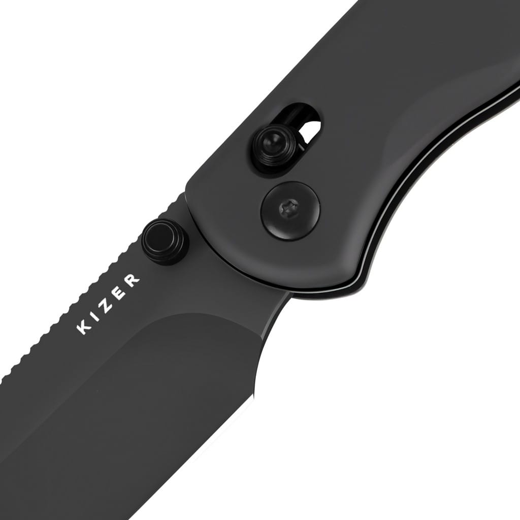 Azo to doświadczony projektant firmy Kizer znany z prostych i praktycznych konstrukcji, które są wysoce cenione przez miłośników noży codziennego użytku. Stworzony przez niego model Drop Bear 2 to kolejna udana iteracja w nieznacznie pomniejszonym rozmiarze w stosunku do oryginału. Klingę o uniwersalnym profilu Drop Point wykonano z niemieckiej stali nierdzewnej Nitro-V wzbogaconej o azot i wanad. Pierwiastki te zwiększają twardość i deklarują wyjątkową wydajność krawędzi tnącej, a także odporoność na korozję. W celu zabezpieczenia głowni przed negatywnym działaniem czynników zewnętrznych pokryto ją czarną i antyodblaskową powłoką DLC (Diamond Like Carbon) o twardości zbliżonej do diamentu. Ostrze od góry posiada delikatny skos w okolicy czubka, przez co zyskuje odrobinę agresywny wygląd. Klingę osadzono na ceramicznych łożyskach kulkowych, która przy wykorzystaniu kołka wysuwa się płynnie i gładko. Karbowany grzbiet głowni stanowi stabilne wsparcie dla kciuka pomagając przy zadaniach wymagających większej precyzji. Unikatowy rodzaj blokady Clutch Lock, w postaci obustronnego bolca na rękojeści, służącego również do rozkładania narzędzia, zapewnia wysoki poziom bezpieczeństwa. Jest to system o nazwie Gemini składający się z dwóch sprężyn w kształcie litery omega, mający po pięć otworów na obu linersach. Co daje aż 25 opcji indywidualnego dopasowania mocy blokady, w zależności od preferencji. Grafitowe okładziny chwytu o opływowym kształcie zrobiono z aluminium. Zaokrąglone krawędzie i delikatne wyprofilowanie pod palec gwarantują komfort pracy. Na zakończeniu umieszczono otwór umożliwiający przełożenie breloka ozdobnego lub paracordu. Konstrukcję uzupełnia dwupozycyjny klips mocujący pozwalający na wygodne przenoszenie foldera w kieszeni spodni lub przy wyposażeniu. W zestawie znajduje się ściereczka z mikrofibry do czyszczenia noża oraz zestaw zapasowych śrubek i sprężyn. Drop Bear 2 to ciekawa propozycja na co dzień, która sprawdzi się zarówno do EDC, jak i podczas służbowego spotkania lub wieczornego wyjścia, jako elegancki dodatek do garderoby. Firma Kizer współpracuje z designerami z całego świata i skutecznie przekształca koncepcje w rzeczywistość. Wykorzystuje materiały pochodzące z USA i Japonii, aby dopasowanie i wykończenie każdego egzemplarza było na najwyższym poziomie. Posiada centrum badawczo-rozwojowe, a także linię przemysłową z nowoczesnymi i precyzyjnymi maszynami dostarczającymi wydajność i niezawodność. Nie uznaje dróg na skróty, żadnych kompromisów, a każdy etap produkcji wykonuje we właściwy i efektywny sposób.