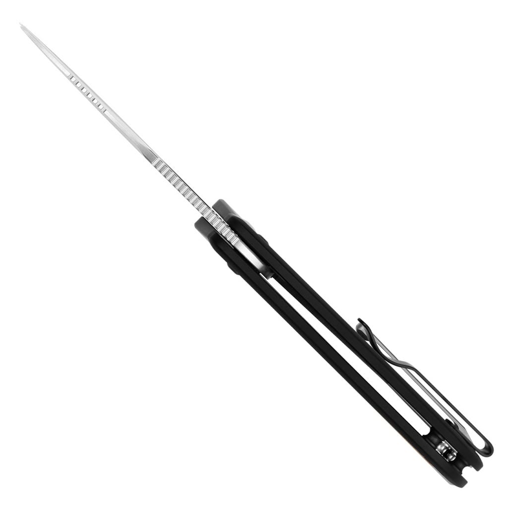 Nice Guy to lekki model skrupulatnie zaprojektowany przez Azo dla firmy Kizer. Folder należy do przystępnej cenowo linii Vanguard i stanowi doskonały wybór na towarzysza codziennej przygody. Głownia o uniwersalnym profilu Drop Point została wykonana z niemieckiej stali nierdzewnej Nitro-V wzbogaconej o azot i wanad. Pierwiastki te zwiększają jej twardość, odporoność na korozję oraz wpływają na wydajność krawędzi tnącej. Nóż dzięki temu idealnie sprawdzi się również w wilgotnym środowisku. Wykończenie ostrza metodą Satin pozostawia drobne ryski lekko matujące powierzchnię, co daje efekt niedokładnego wypolerowania. Klingę osadzono na ceramicznych łożyskach kulkowych, która przy wykorzystaniu flippera, pełniącego jednocześnie funkcję jelca, wysuwa się płynnie i gładko. Prosta obsługa jedną ręką zadowoli zarówno osoby prawo, jak i leworęczne. Bezpieczeństwo pracy zapewnia blokada Liner Lock chroniąca przed przypadkowym złożeniem się narzędzia, gdy jest w użyciu. Dodatkowo podwójne karbowanie na grzbiecie głowni daje stabilne podparcie dla kciuka, co jest niezwykle przydatne przy precyzyjnych zadaniach. Aluminiowa rękojeść, anodowana na czarno, dzięki głębokiemu wyprofilowaniu pod palec gwarantuje komfort użytkowania i pewny chwyt. Na zakończeniu umieszczono otwór umożliwiający przełożenie breloka ozdobnego lub paracordu. Konstrukcję uzupełnia dwupozycyjny klips mocujący pozwalający na głębokie przenoszenie noża w kieszeni spodni lub przy wyposażeniu. W zestawie znajduje się ściereczka z mikrofibry do czyszczenia produktu oraz komplet zapasowych śrubek. Firma Kizer współpracuje z projektantami z całego świata i skutecznie przekształca koncepcje w rzeczywistość. Wykorzystuje materiały pochodzące z USA i Japonii, aby dopasowanie i wykończenie każdego egzemplarza było na najwyższym poziomie. Posiada centrum badawczo-rozwojowe, a także linię przemysłową z nowoczesnymi i precyzyjnymi maszynami, które dostarczają wydajność i niezawodność. Nie uznaje dróg na skróty, żadnych kompromisów, a każdy etap produkcji wykonuje we właściwy i efektywny sposób.